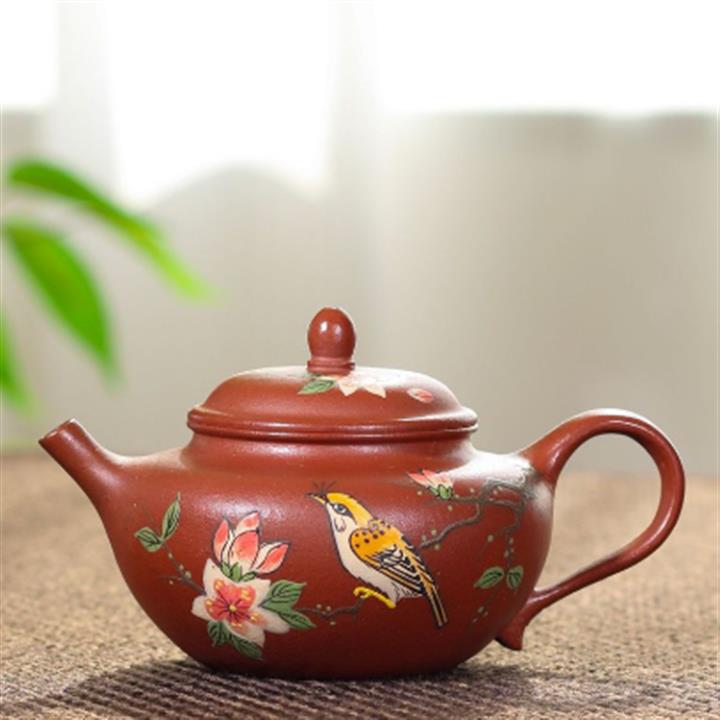 140cc原礦小紅泥泥繪花鳥邀月茶壺POT9048