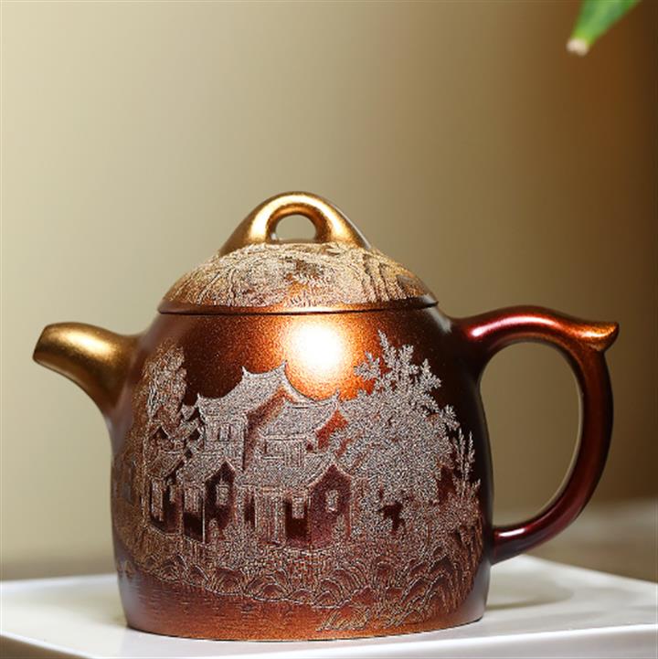 260cc原礦綠泥古法貝殼燒秦權茶壺POT8833