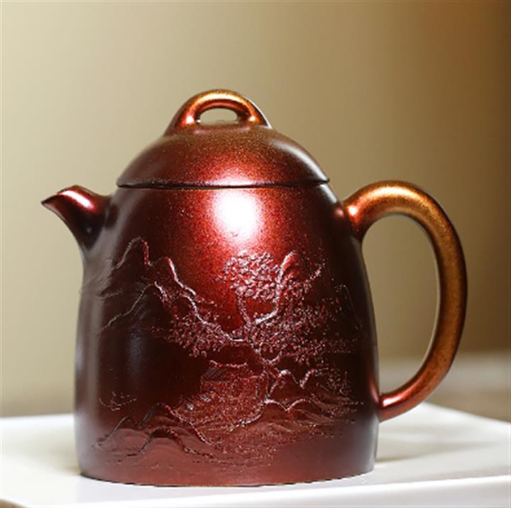 450cc原礦紫泥古法貝殼燒秦權茶壺POT8832
