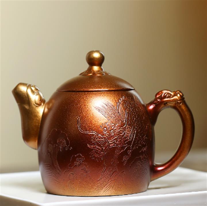 300cc原礦紫泥古法貝殼燒蒼龍出海茶壺POT8834