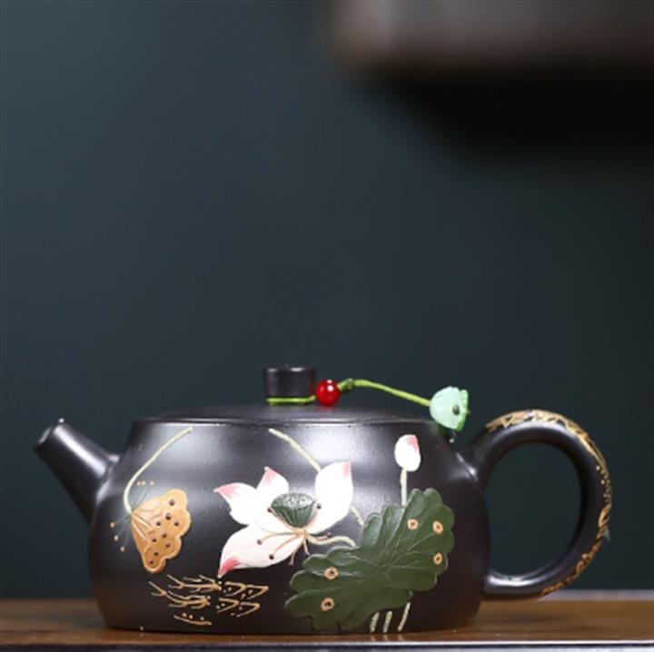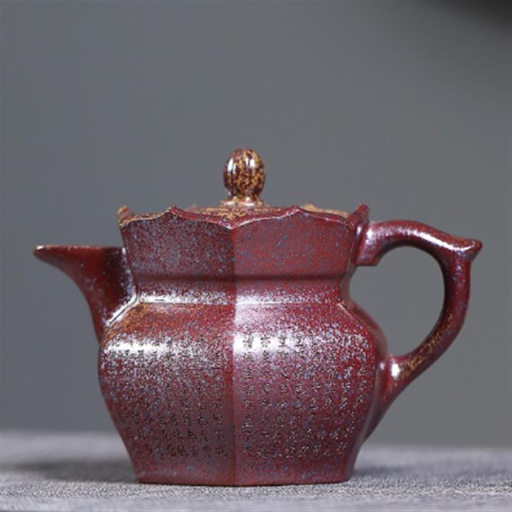 260cc原礦黑朱泥金縷井欄茶壺POT9054