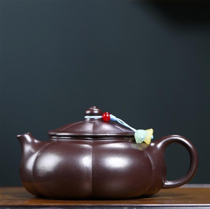 【簡介】選用原礦紫泥製成,整體色調溫潤如玉,猶如晚霞映照下的古燈,散發出迷人的光彩。壺身線條流暢,造型別致,既有古典的韻味,又不失現代的審美。品茗之余,更可欣賞其藝術之美。