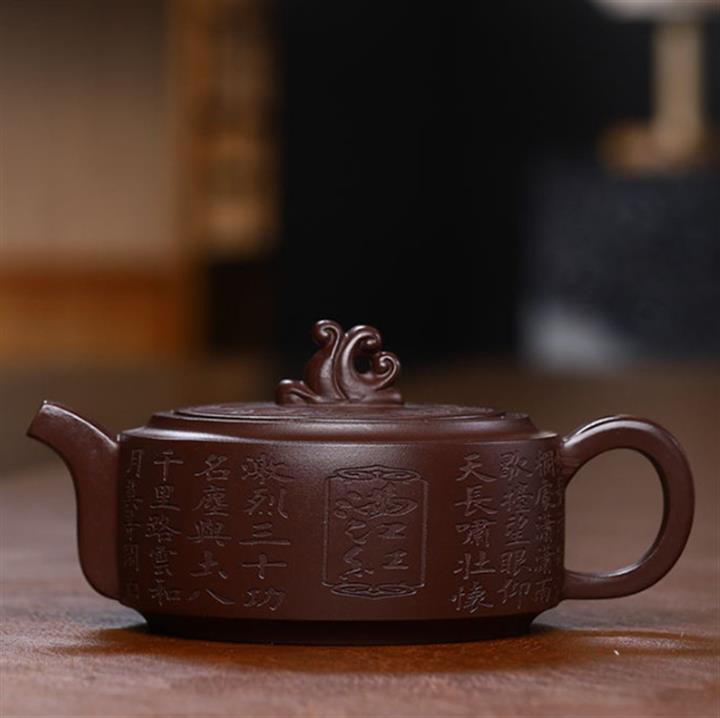 200cc原礦紫泥刻繪周盤茶壺POT8958