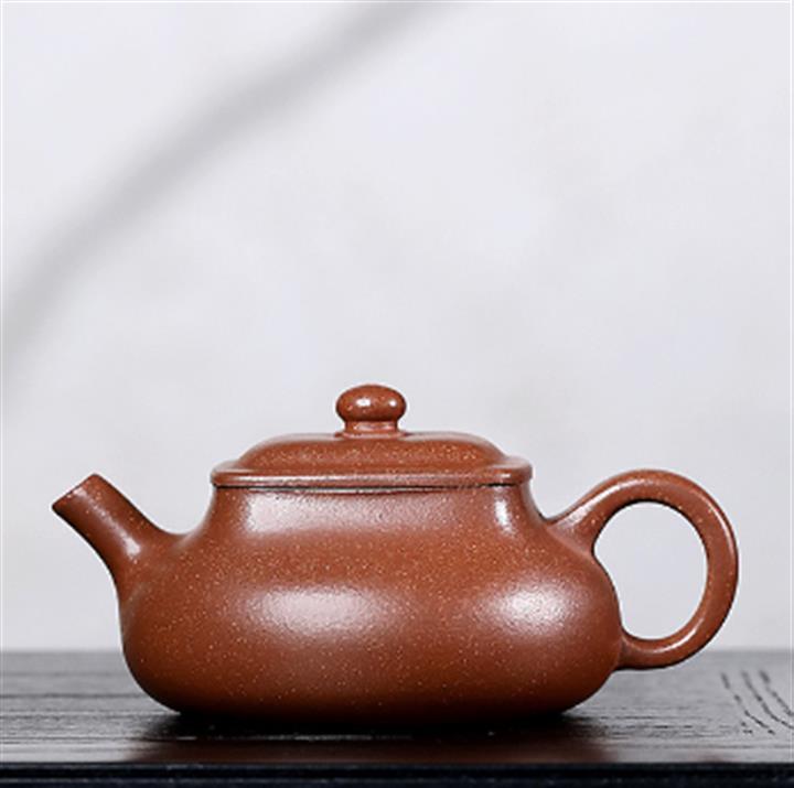 【泥料特點】砂土氣重,似淳實農民,日久使用,漸露鋒芒,養成變化甚大,溫潤莊重。線條優美自然,嘴把搭配協調,身桶配上細長的把搭配,更顯優生動……