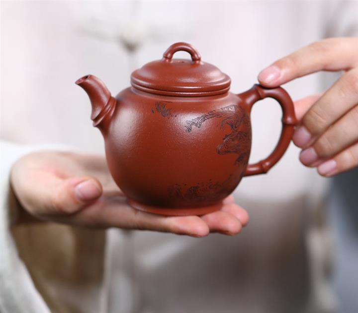 原礦大紅袍手工描金水平茶壺POT7813