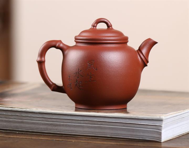 250cc原礦紅清水泥雙國工合作高竹茶壺POT8057
