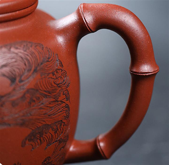 【作品介紹】此款壺形線條流暢,壺把,壺嘴,壺身壹氣呵成栩栩如生,是收藏把玩的好壺,泥料色澤古樸典雅,日久使用,漸露鋒芒,養成變化快,溫潤莊重,用其泡茶,使用的年代久,壺身就溫潤,泡出來的茶湯也就醇郁芳馨。
