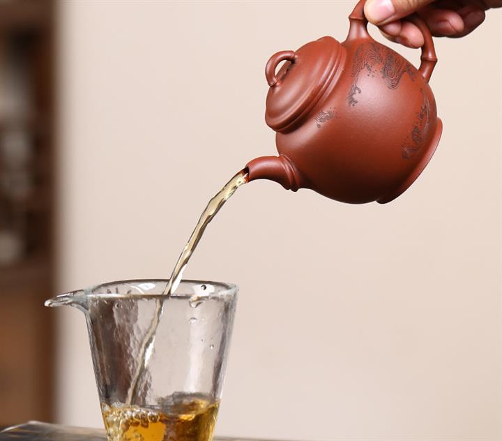 【泥料特點】砂土氣重,似淳實農民,日久使用,漸露鋒芒,養成變化,溫潤莊重。紫砂是壹種雙重氣孔結構的多孔性材質,氣孔微細,密度高。用紫砂壺沏茶,不失原味,且香不渙散,得茶之真香真味。紫砂使用越久,壺身色澤越發光亮照人,氣韻溫雅。紫砂壺長久使用器身會因撫摸擦拭,變得越發溫潤光澤。