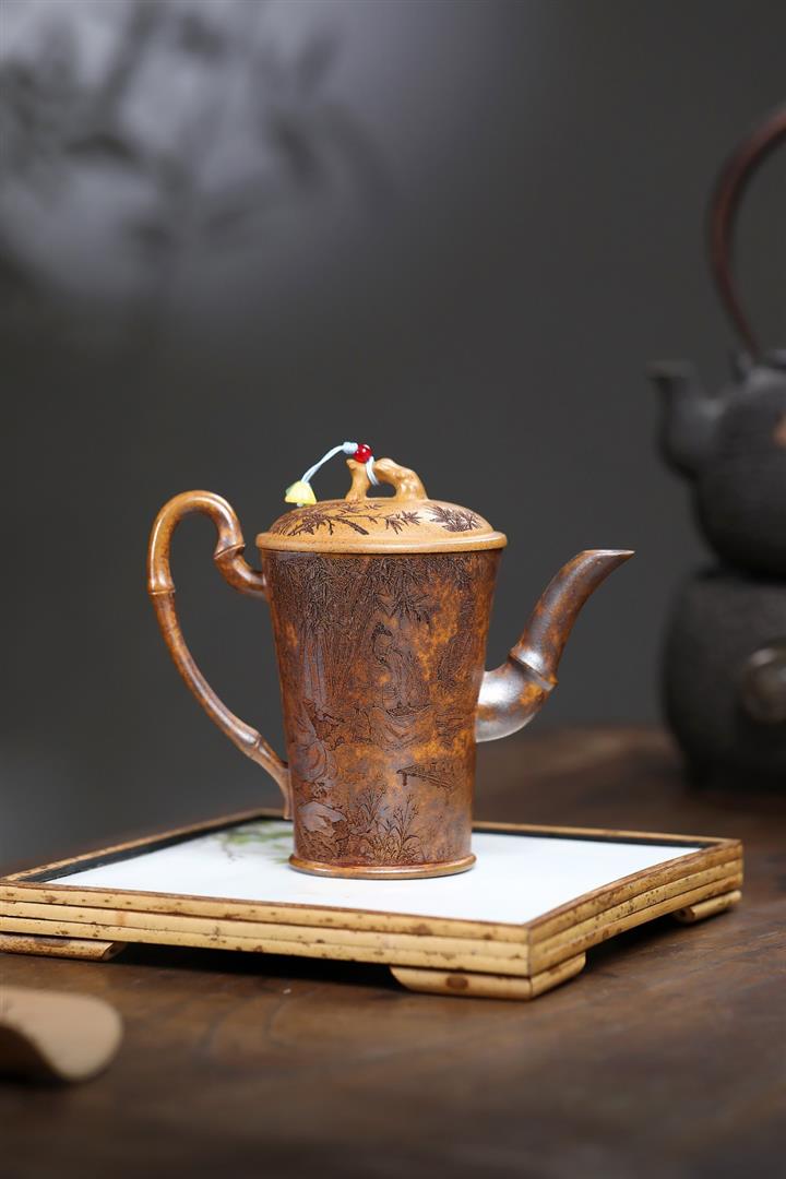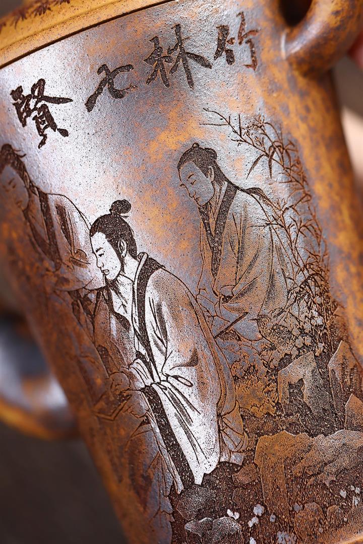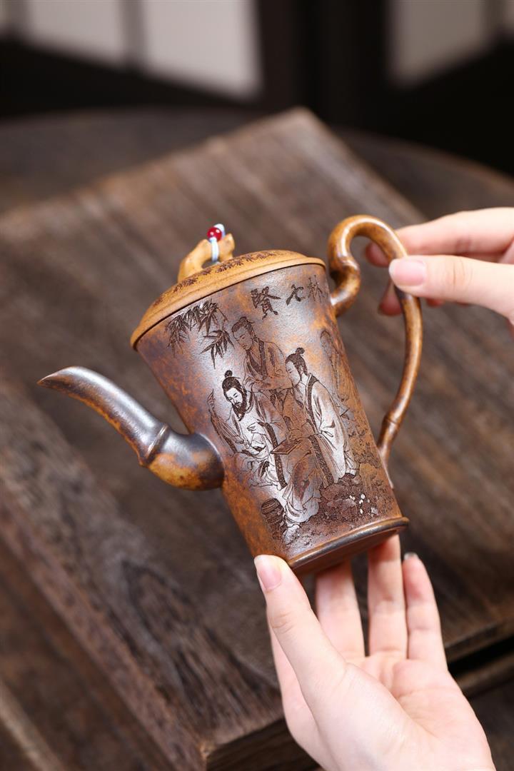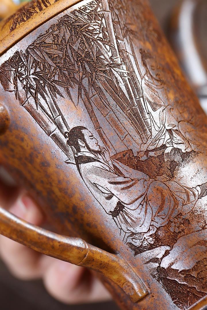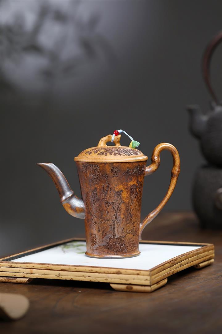 340cc原礦龍骨金砂竹林七賢竹筒茶壺POT8063