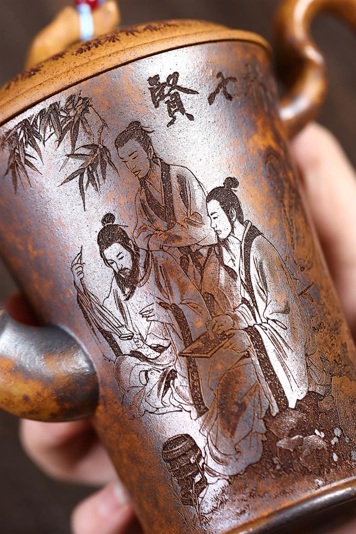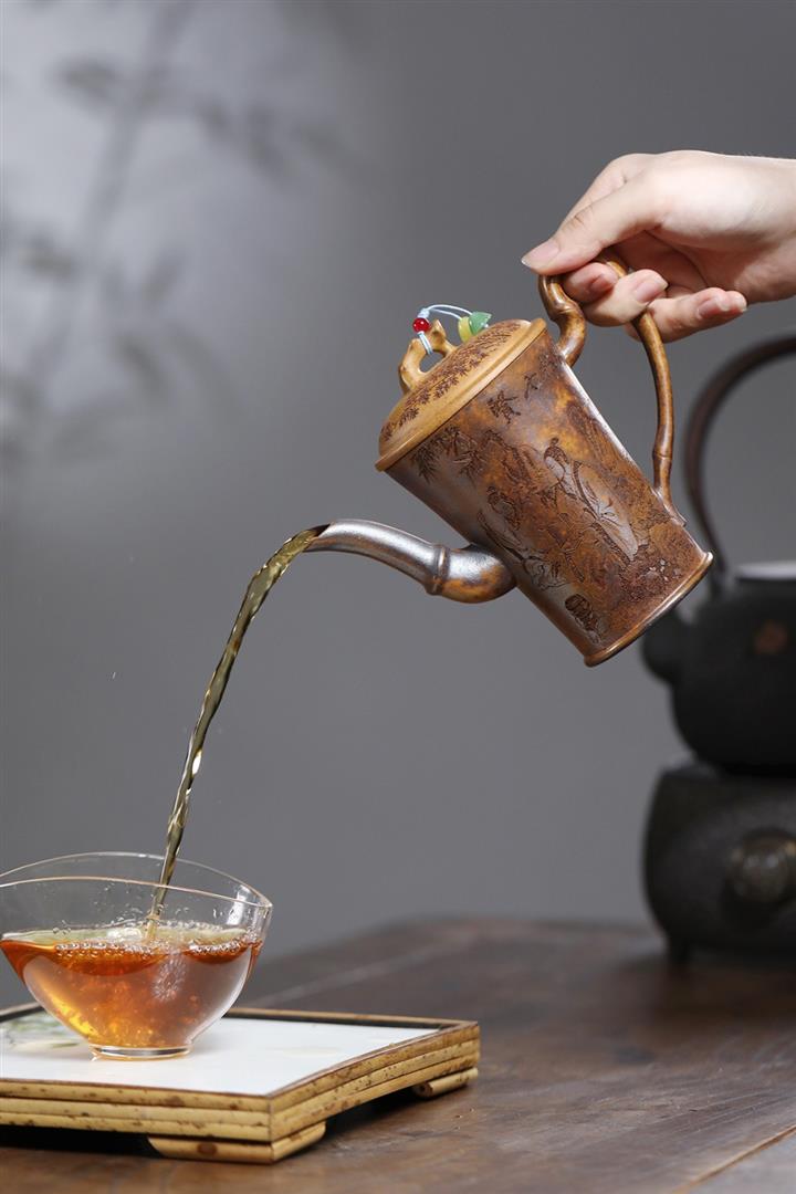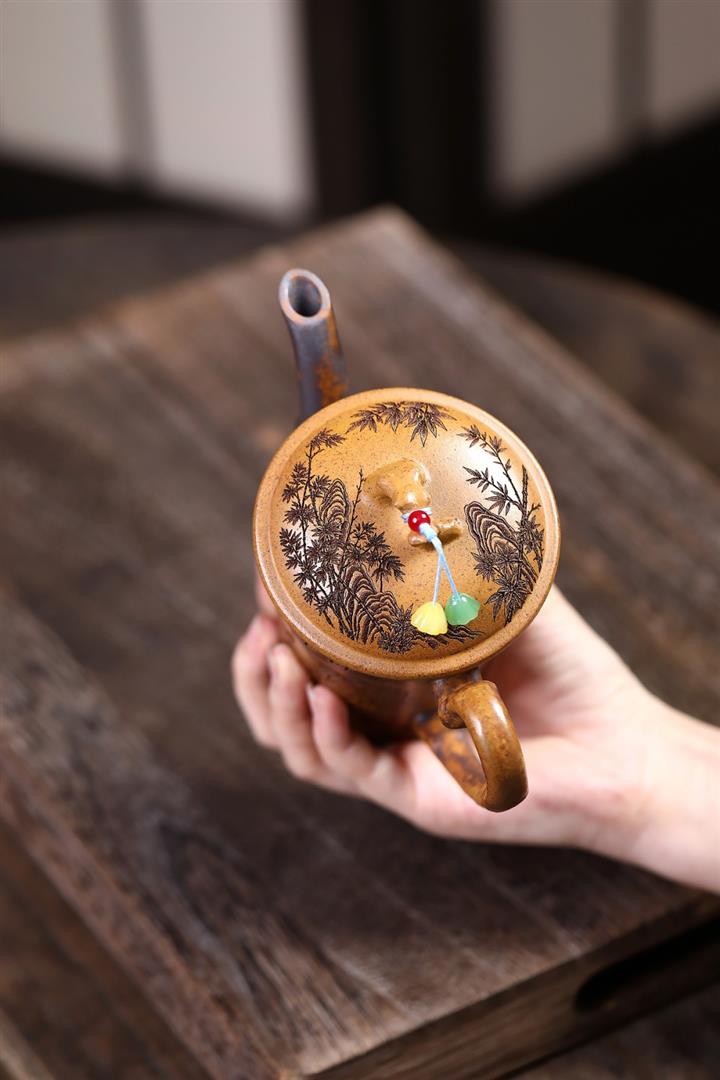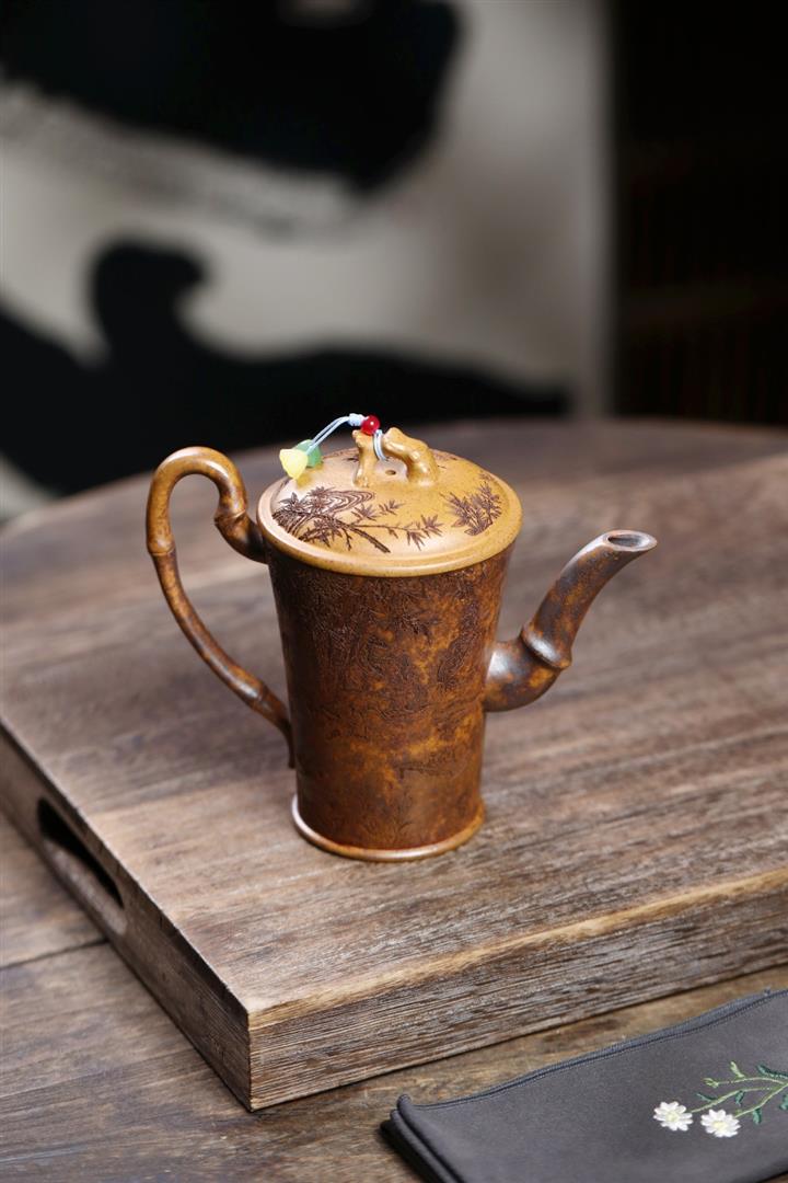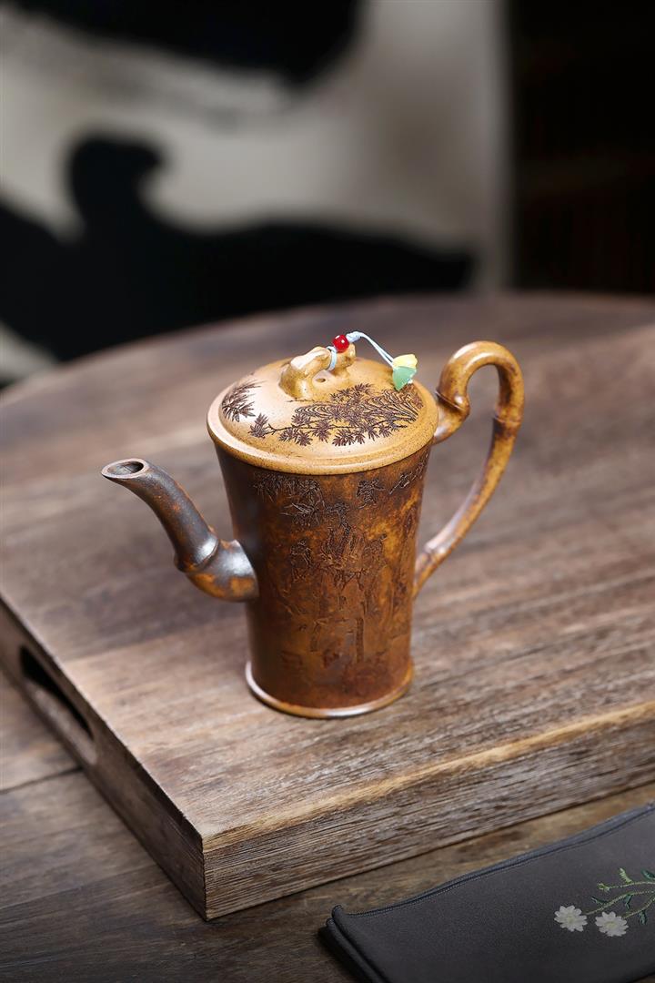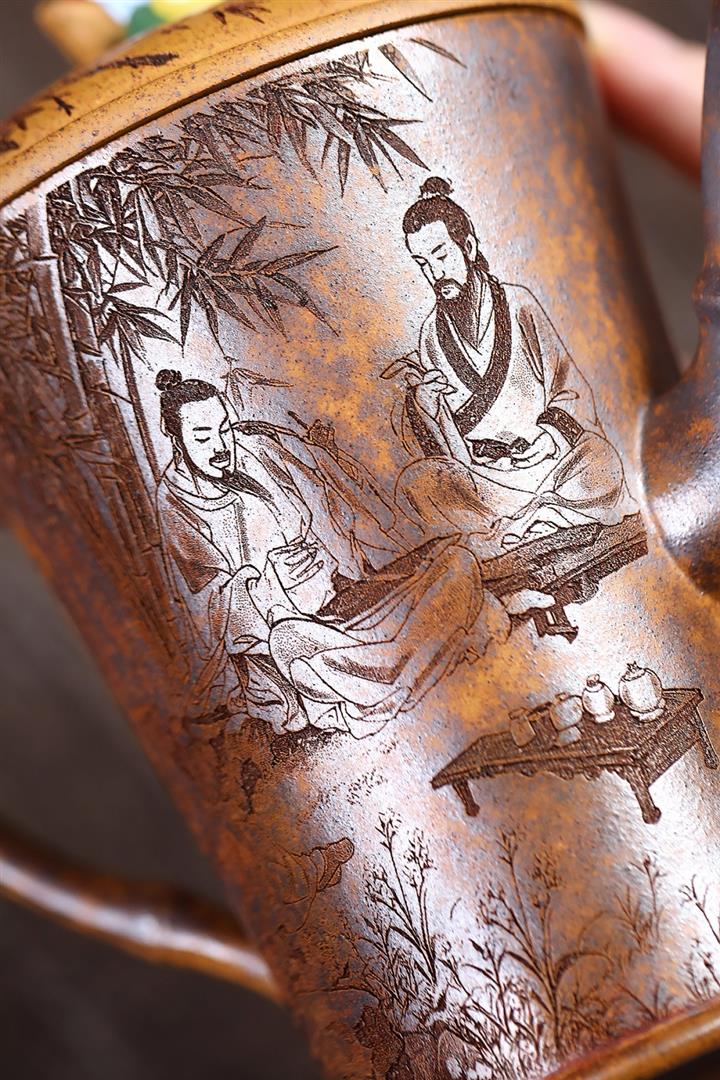 340cc原礦龍骨金砂竹林七賢竹筒茶壺POT8063