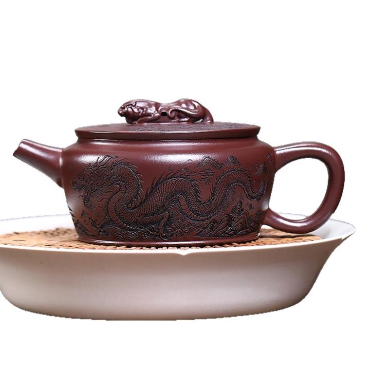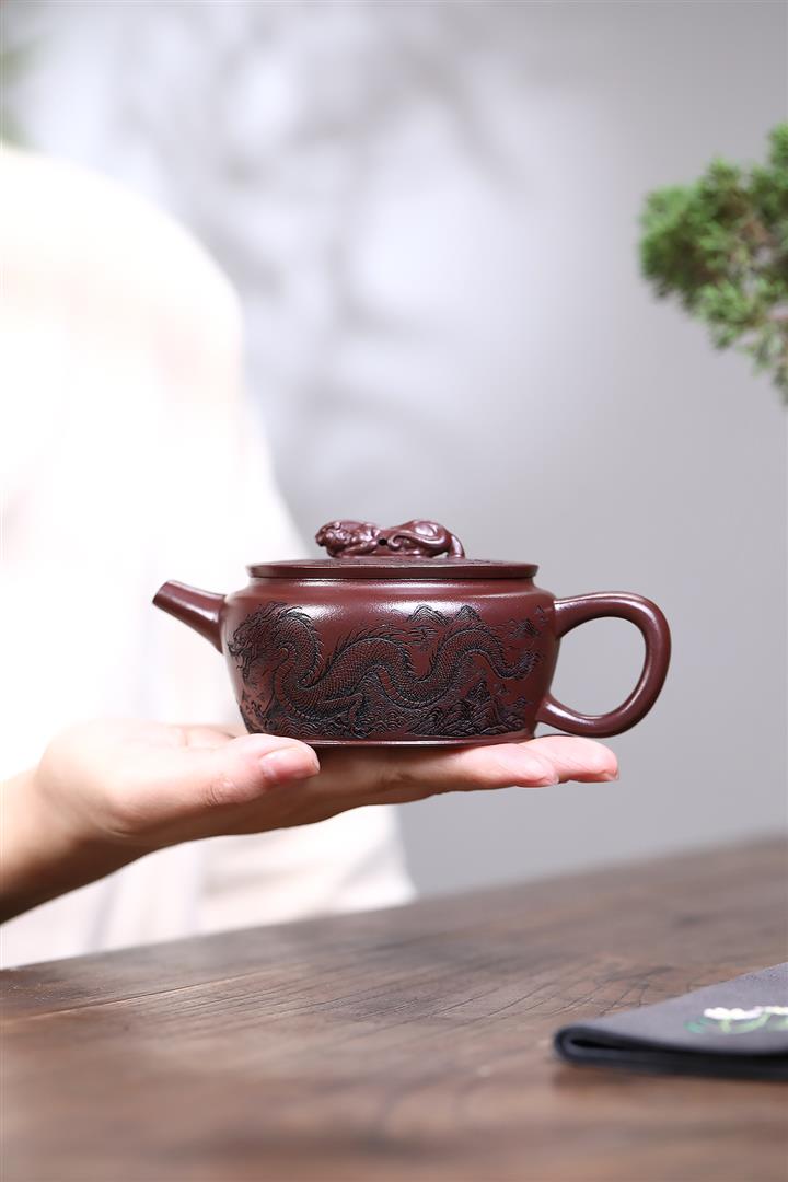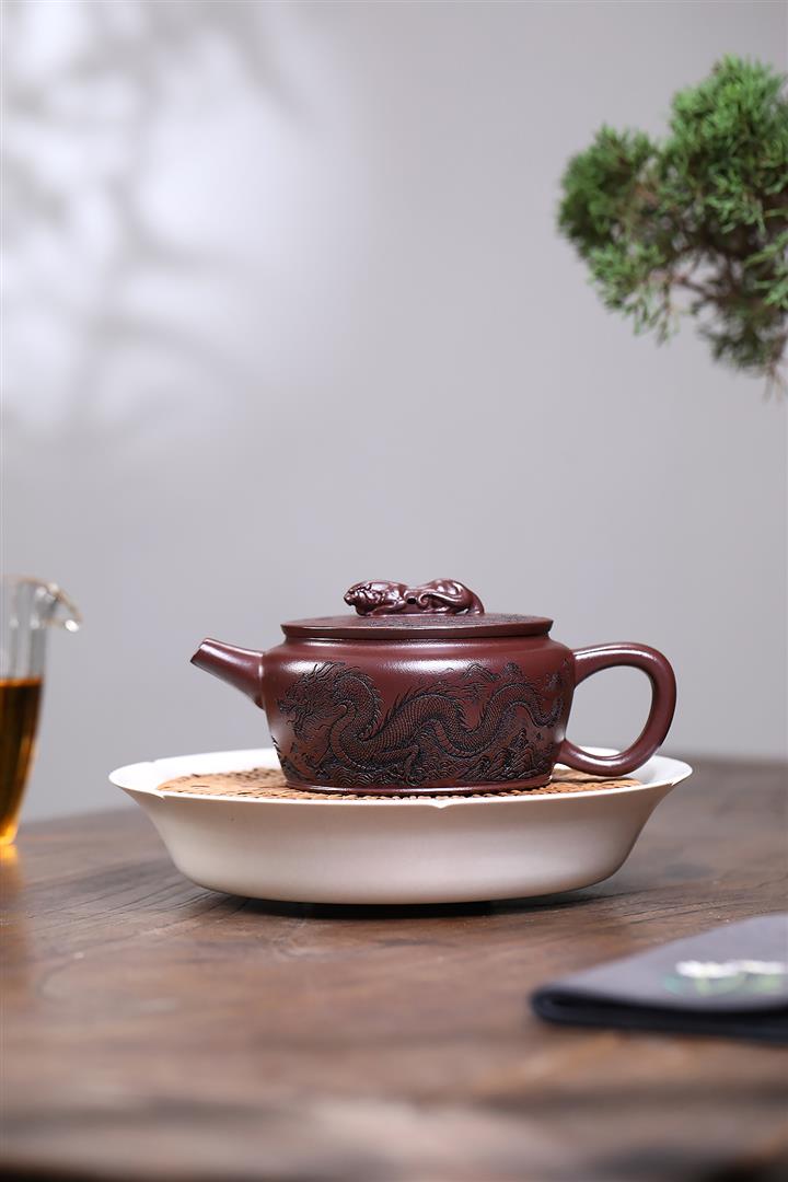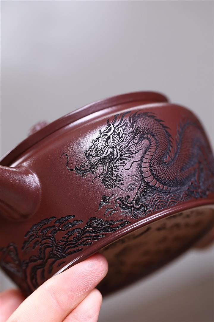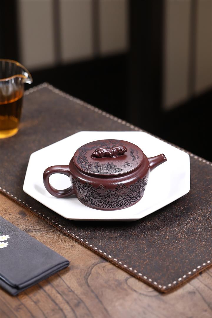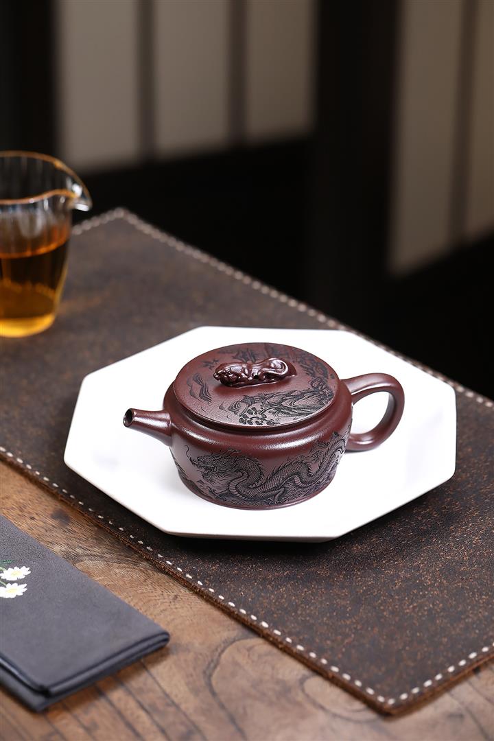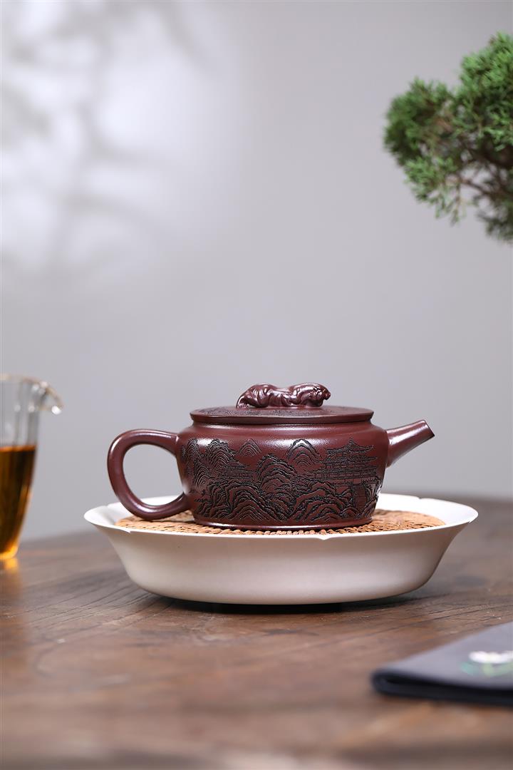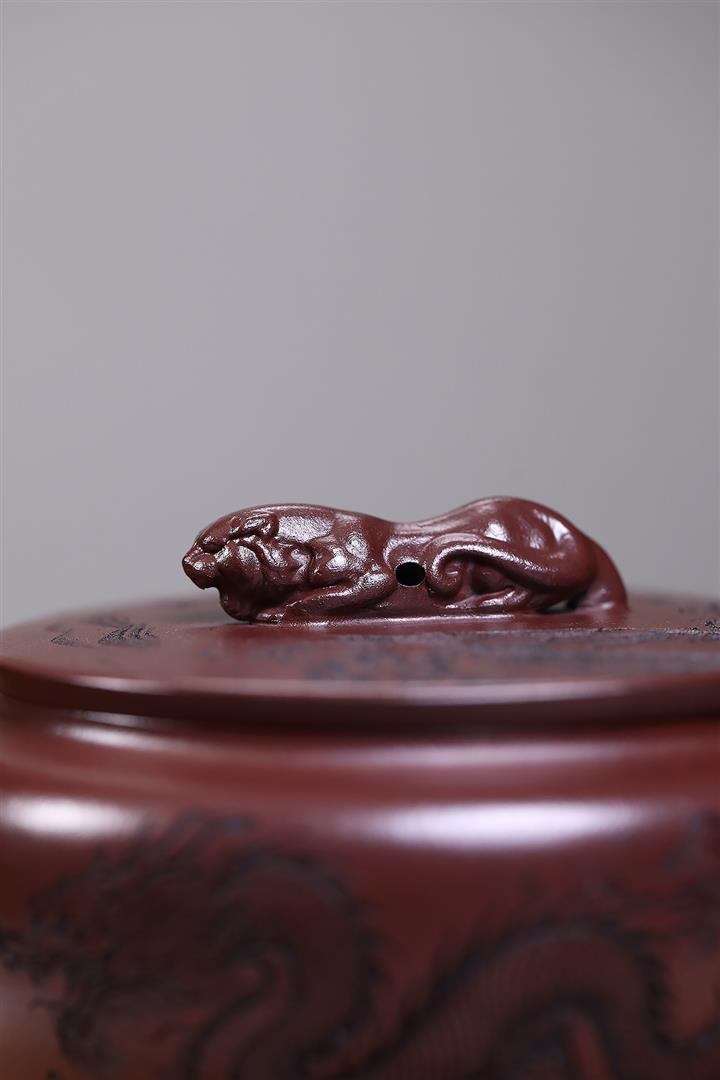 240cc原礦紫泥滿刻伏虎漢瓦茶壺POT8070