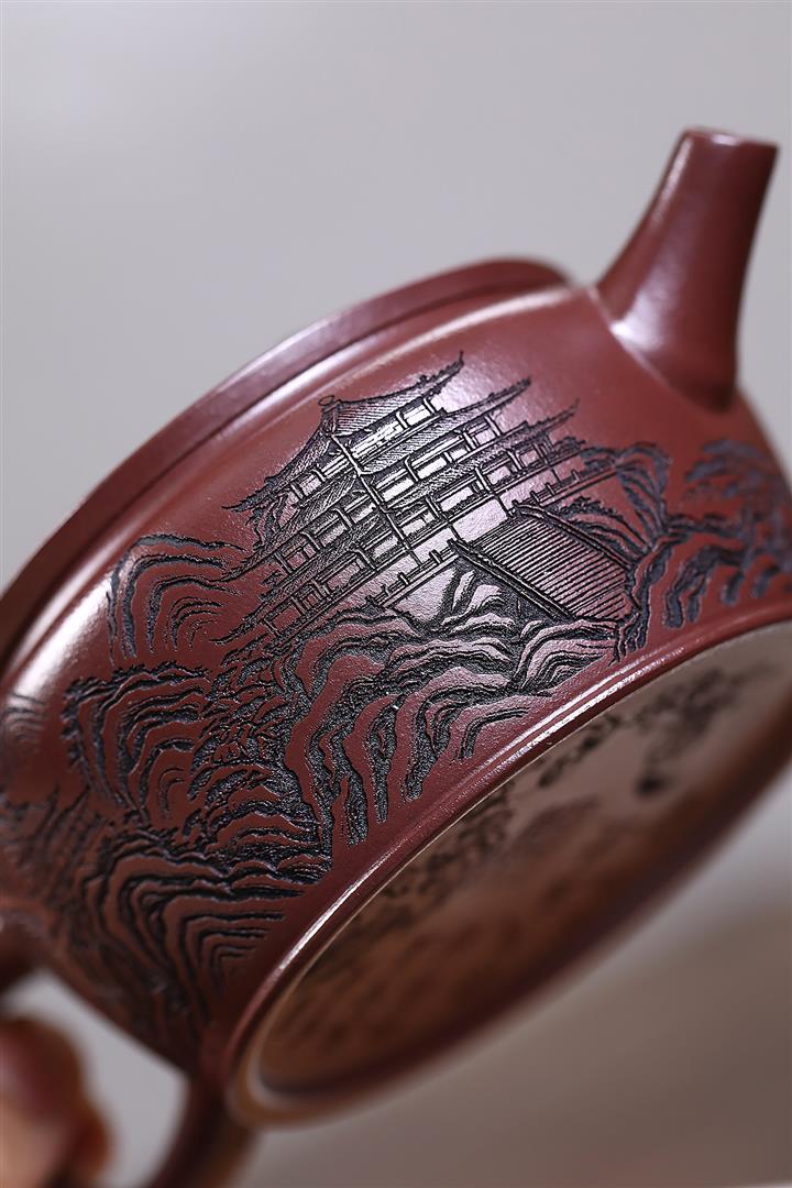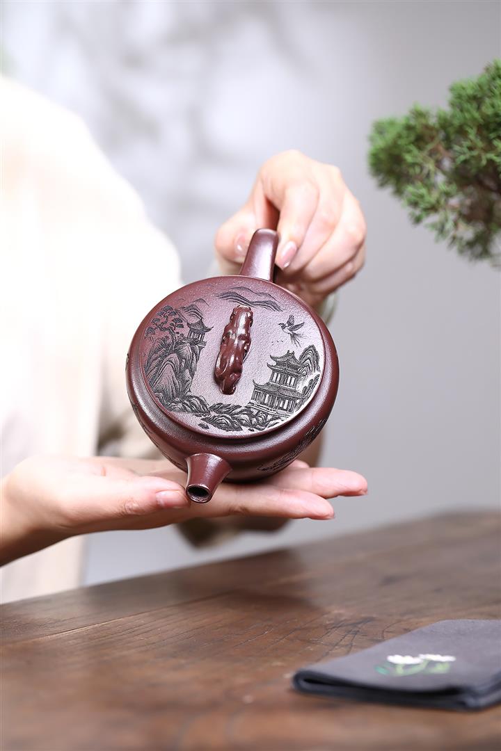 原礦紫泥刻繪石瓢紫砂壺POT4752