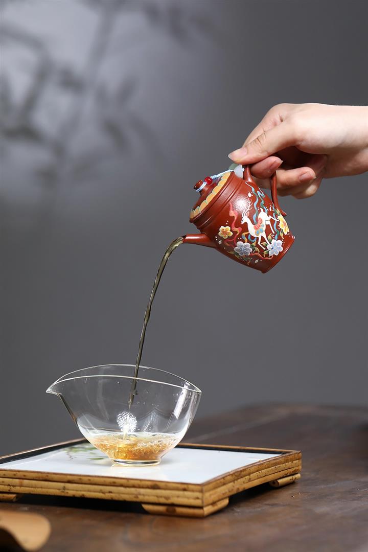 【泥料特點】砂土氣重,似淳實農民,日久使用,漸露鋒芒,養成變化,溫潤莊重。紫砂是壹種雙重氣孔結構的多孔性材質,氣孔微細,密度高。用紫砂壺沏茶,不失原味,且香不渙散,得茶之真香真味。紫砂使用越久,壺身色澤越發光亮照人,氣韻溫雅。紫砂壺長久使用器身會因撫摸擦拭,變得越發溫潤光澤。