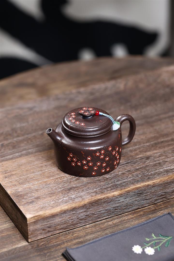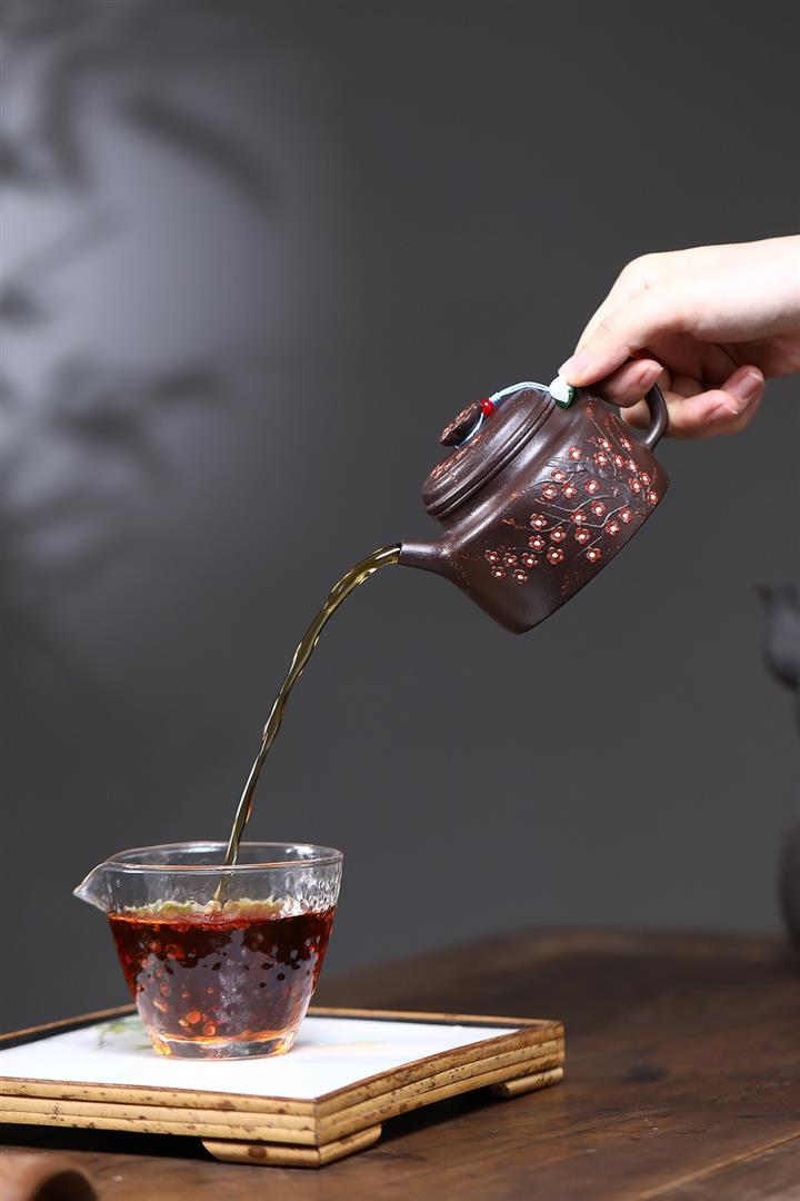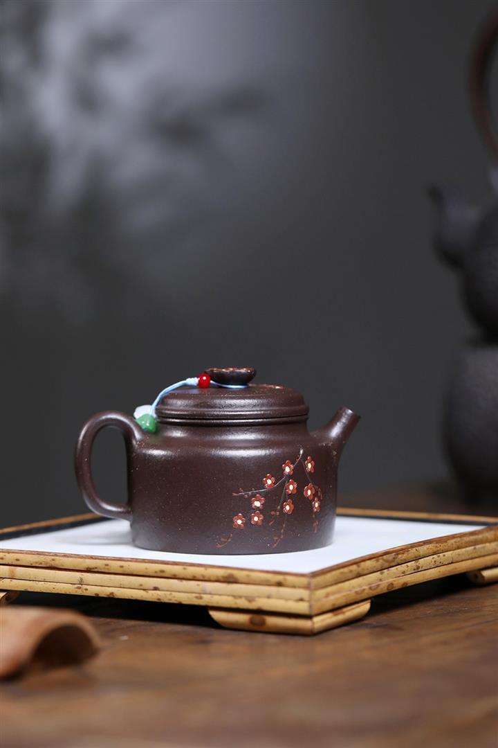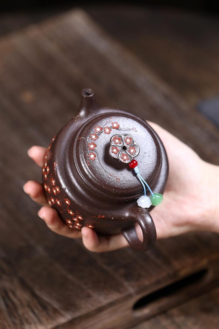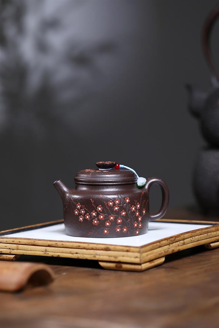 【泥料特點】砂土氣重,似淳實農民,日久使用,漸露鋒芒,養成變化,溫潤莊重。紫砂是壹種雙重氣孔結構的多孔性材質,氣孔微細,密度高。用紫砂壺沏茶,不失原味,且香不渙散,得茶之真香真味。紫砂使用越久,壺身色澤越發光亮照人,氣韻溫雅。紫砂壺長久使用器身會因撫摸擦拭,變得越發溫潤光澤。