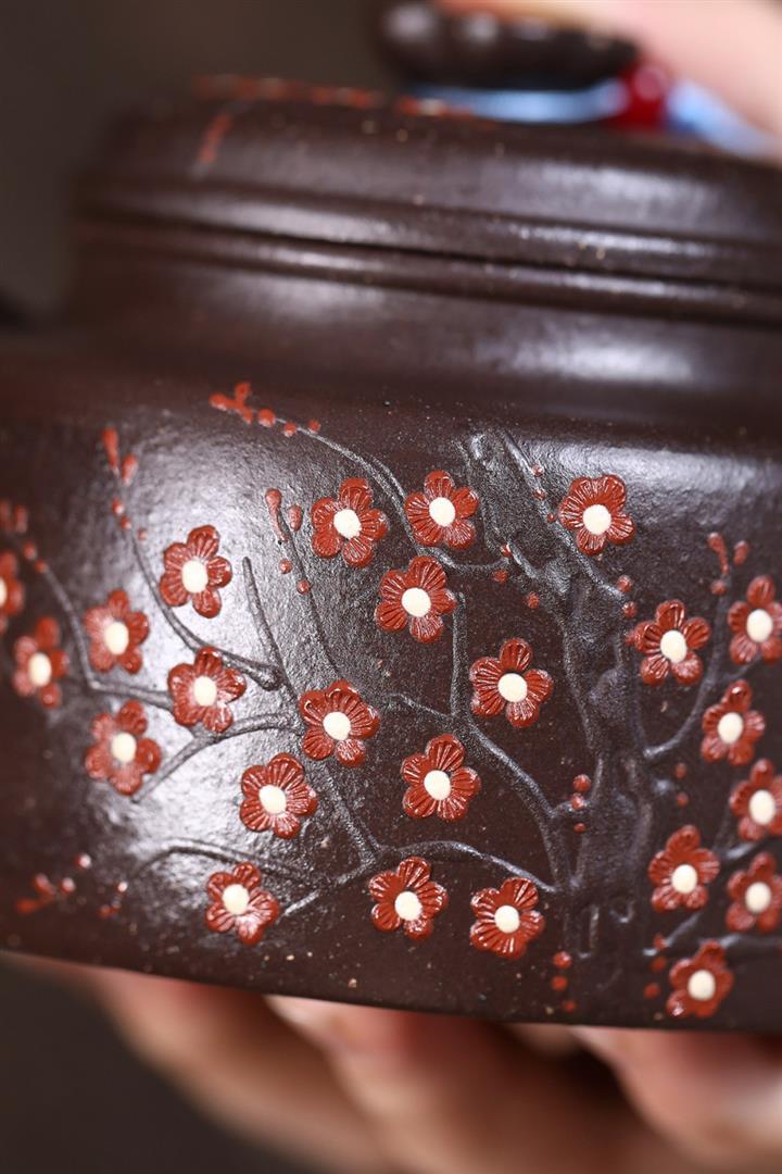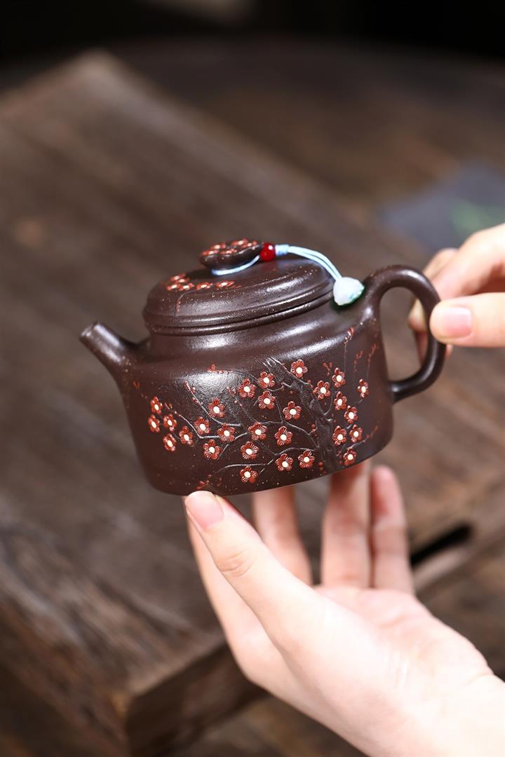 原礦龍血砂手工滿刻蒼松茶壺POT7143