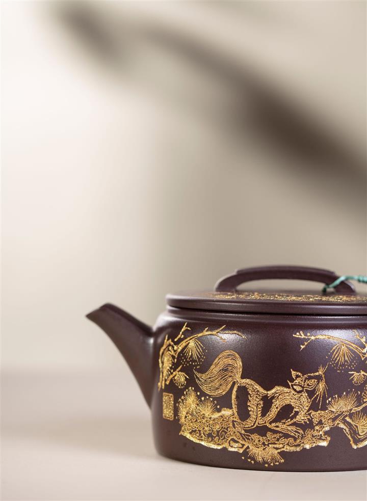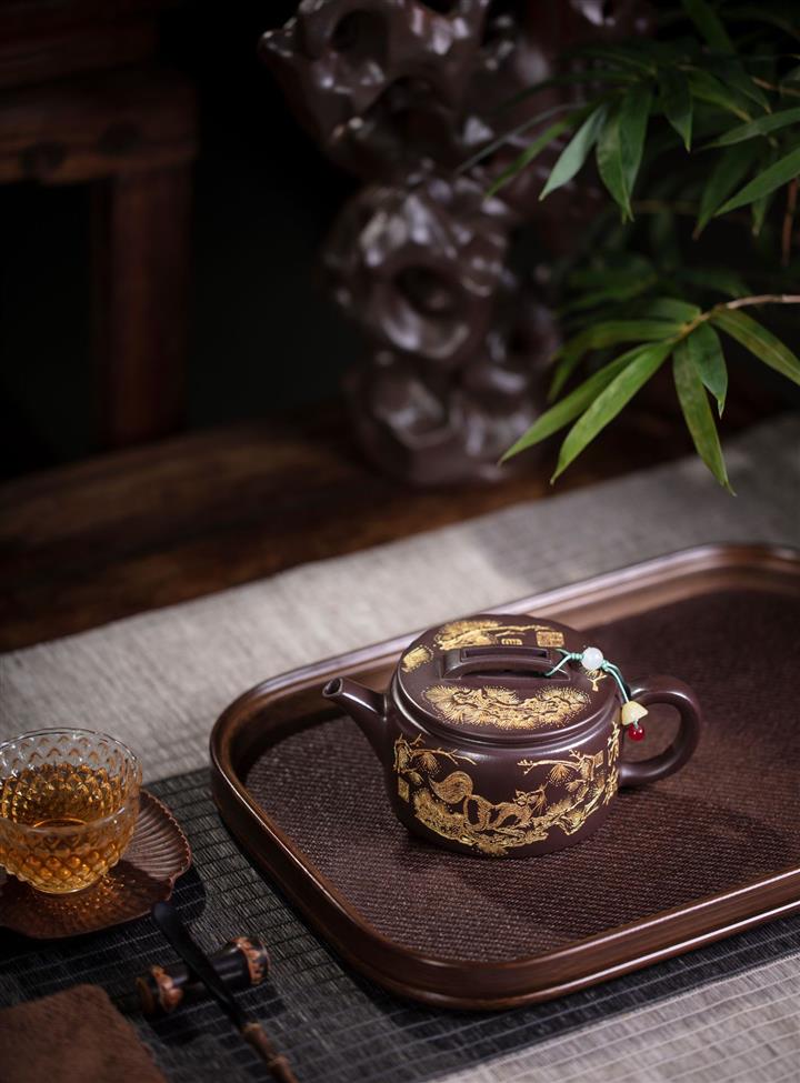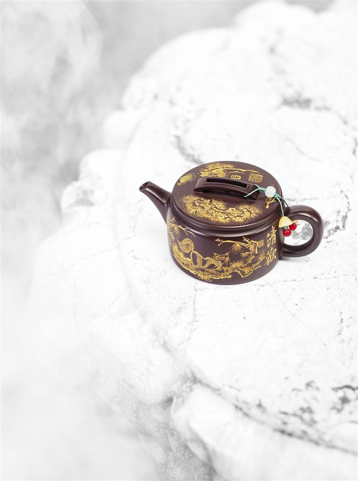 200cc原礦紫泥金刻漢瓦茶壺POT8098