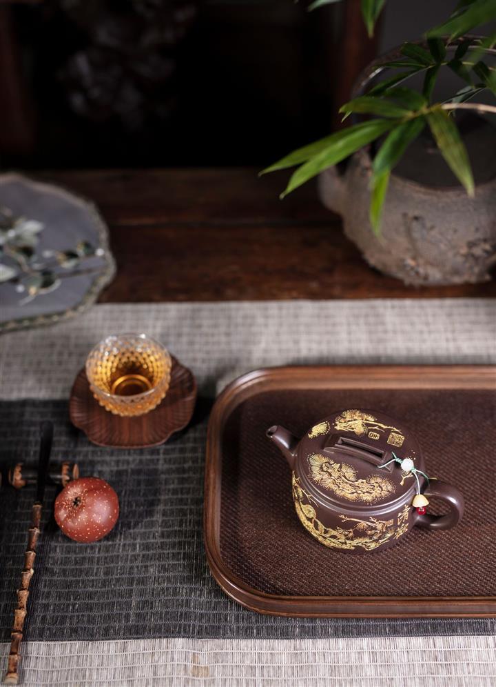 【泥料特點】砂土氣重,似淳實農民,日久使用,漸露鋒芒,養成變化,溫潤莊重。紫砂是壹種雙重氣孔結構的多孔性材質,氣孔微細,密度高。用紫砂壺沏茶,不失原味,且香不渙散,得茶之真香真味。紫砂使用越久,壺身色澤越發光亮照人,氣韻溫雅。紫砂壺長久使用器身會因撫摸擦拭,變得越發溫潤光澤。
