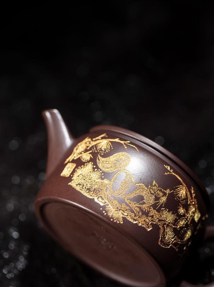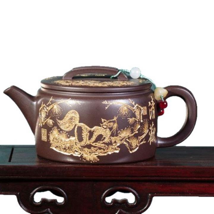 200cc原礦百目紫泥金刻明爐茶壺POT8100
