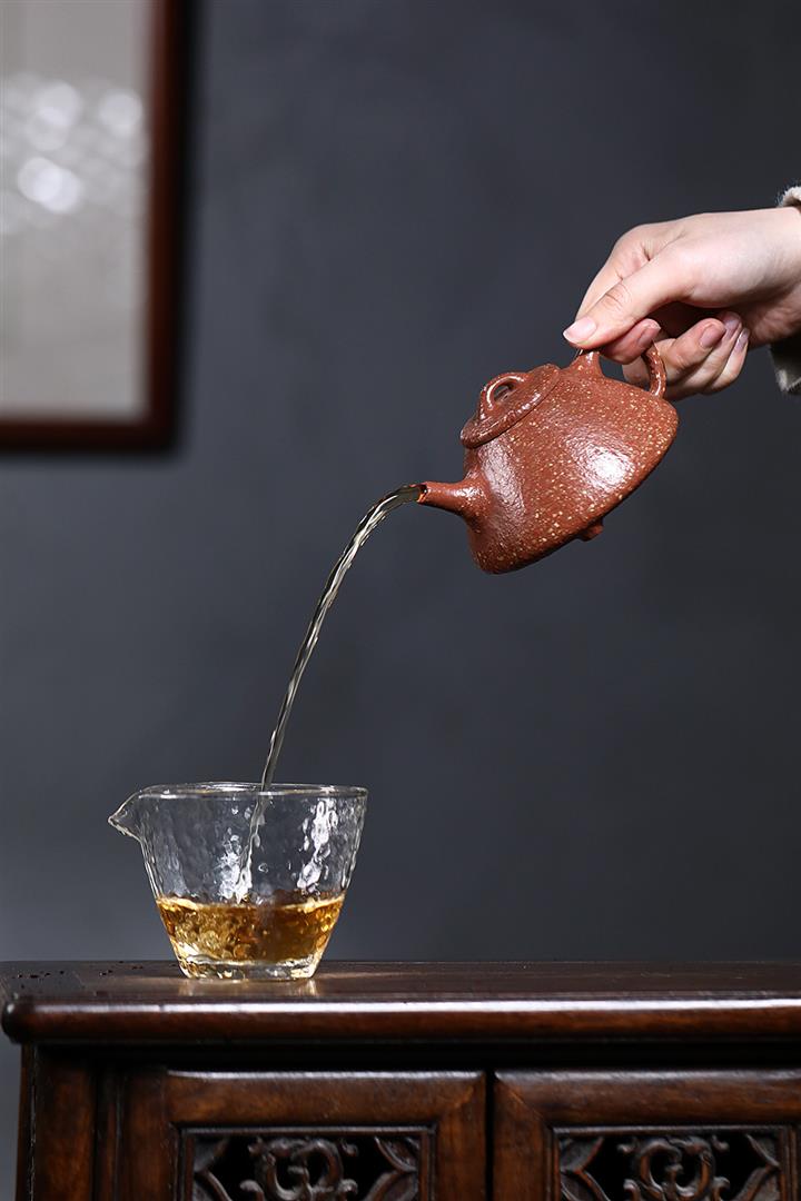 【泥料特點】砂土氣重,似淳實農民,日久使用,漸露鋒芒,養成變化,溫潤莊重。紫砂是壹種雙重氣孔結構的多孔性材質,氣孔微細,密度高。用紫砂壺沏茶,不失原味,且香不渙散,得茶之真香真味。紫砂使用越久,壺身色澤越發光亮照人,氣韻溫雅。紫砂壺長久使用器身會因撫摸擦拭,變得越發溫潤光澤。