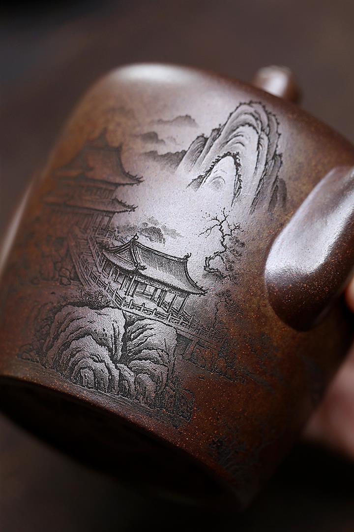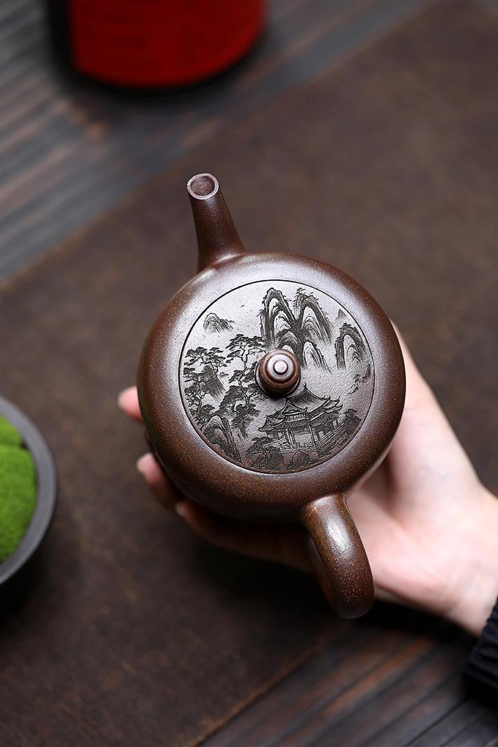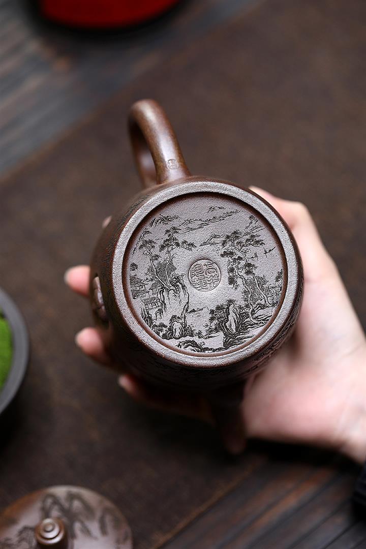 【作品介紹】此款壺形線條流暢,壺把,壺嘴,壺身壹氣呵成栩栩如生,是收藏把玩的好壺,泥料色澤古樸典雅,日久使用,漸露鋒芒,養成變化快,溫潤莊重,用其泡茶,使用的年代久,壺身就溫潤,泡出來的茶湯也就醇郁芳馨。