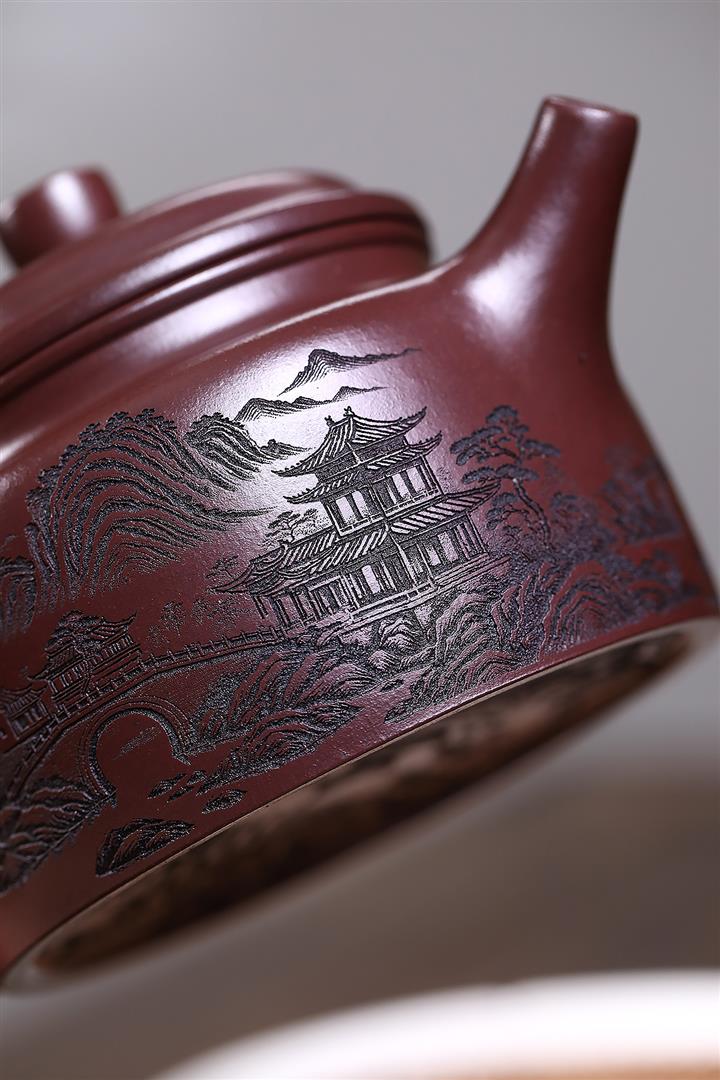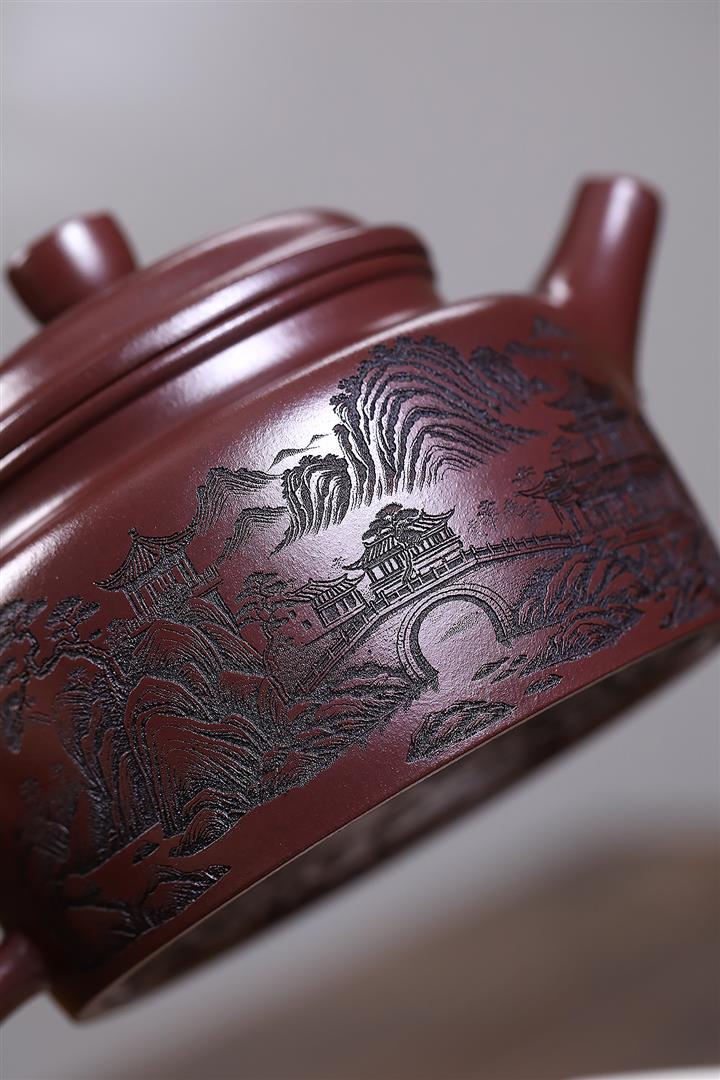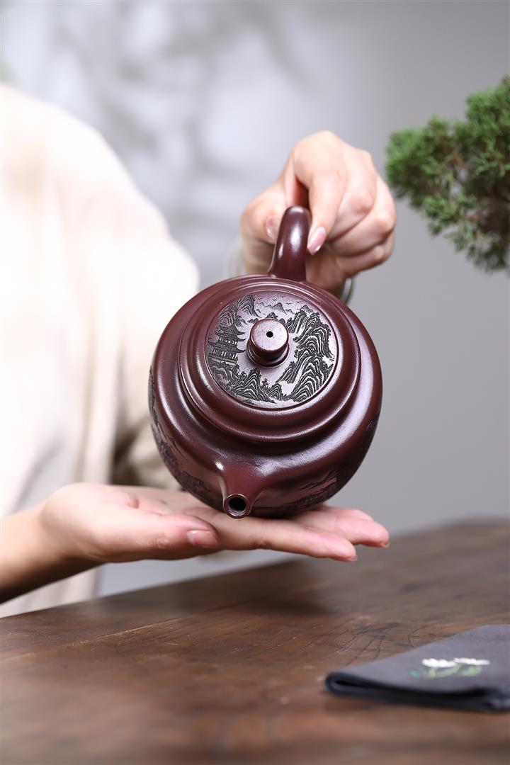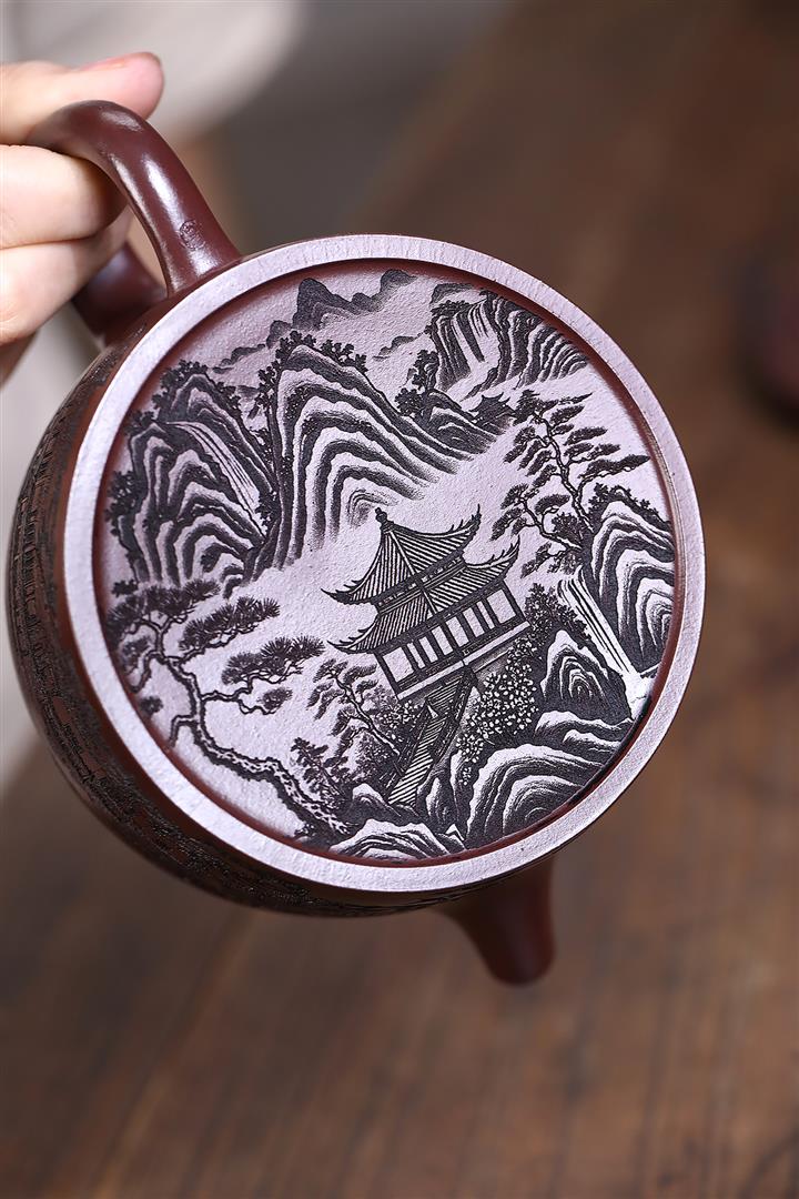 原礦紫泥手工刻繪高石瓢茶壺POT7100