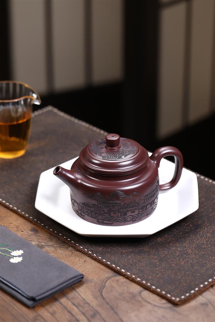 450cc原礦紫泥滿刻大德鐘壺POT8116
