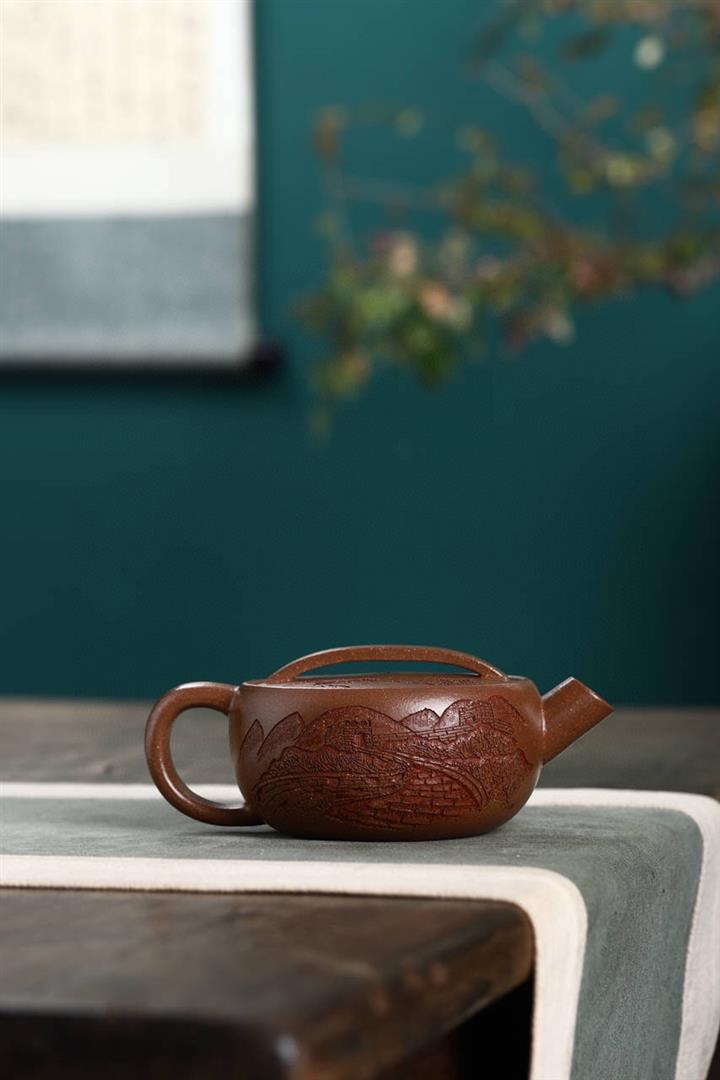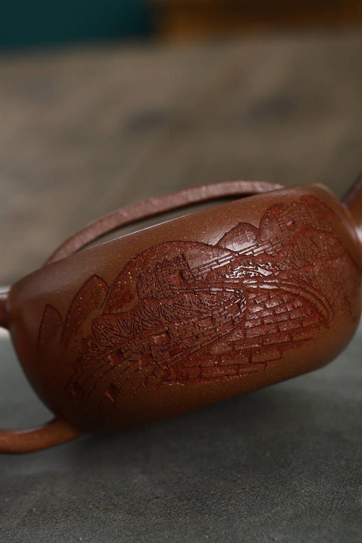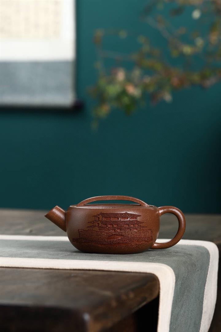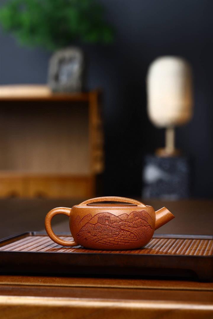 原礦紫朱泥手工刻繪山水龍蛋紫砂壺200cc POT3379