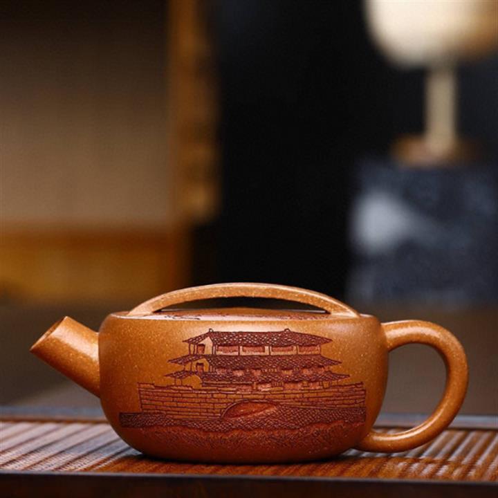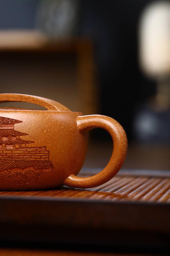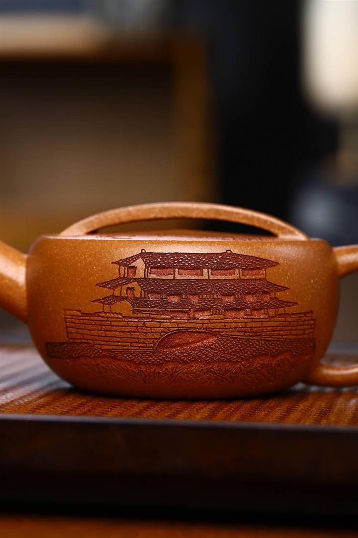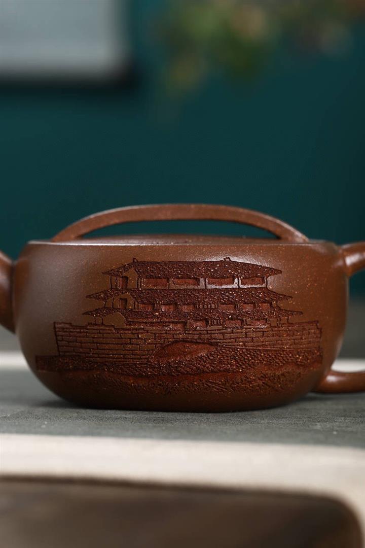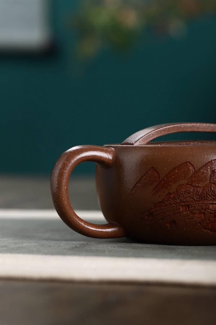 原礦紫朱泥手工刻繪山水龍蛋紫砂壺200cc POT3379