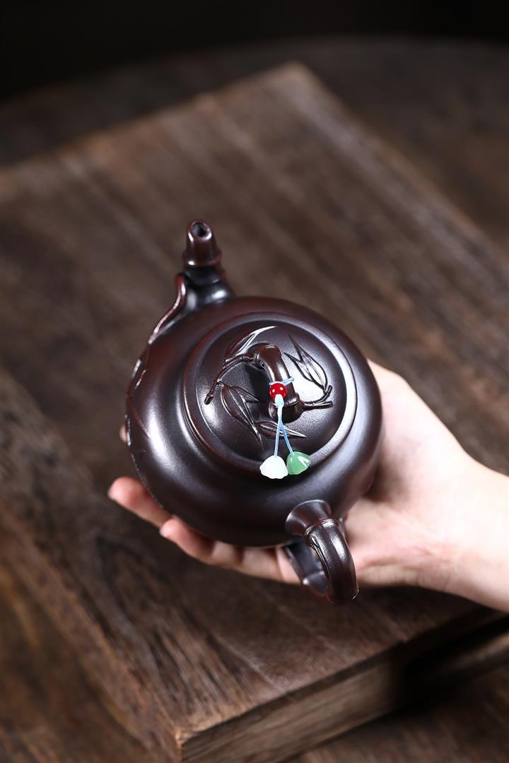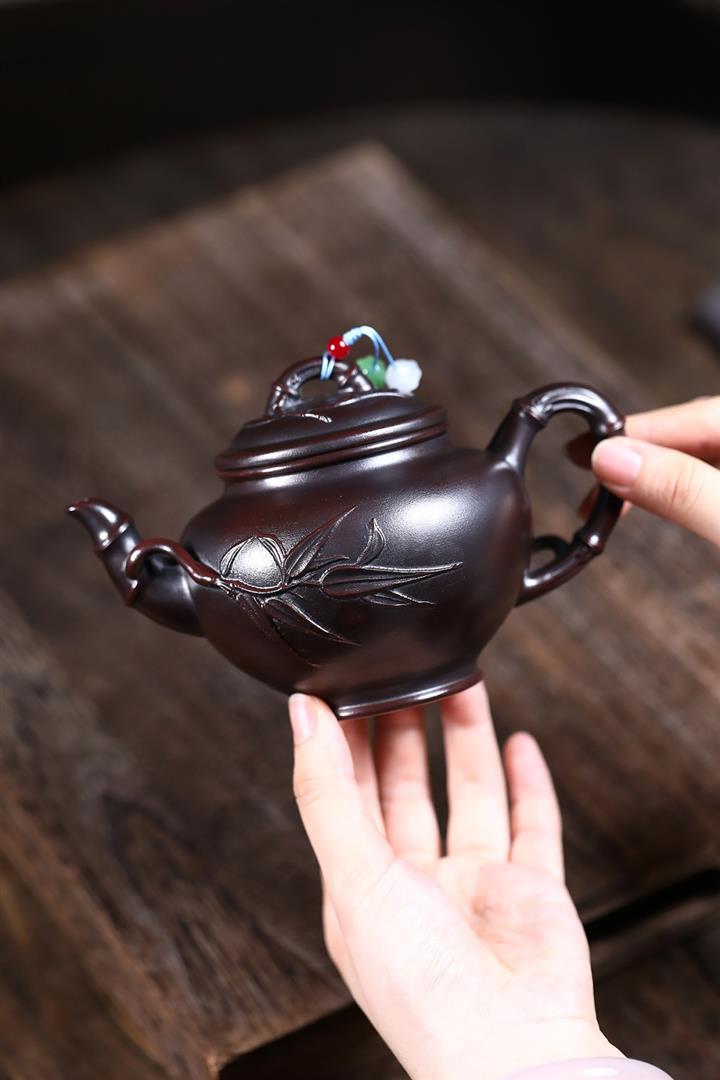 【作品介紹】此款壺形線條流暢,壺把,壺嘴,壺身壹氣呵成栩栩如生,是收藏把玩的好壺,泥料色澤古樸典雅,日久使用,漸露鋒芒,養成變化快,溫潤莊重,用其泡茶,使用的年代久,壺身就溫潤,泡出來的茶湯也就醇郁芳馨。
