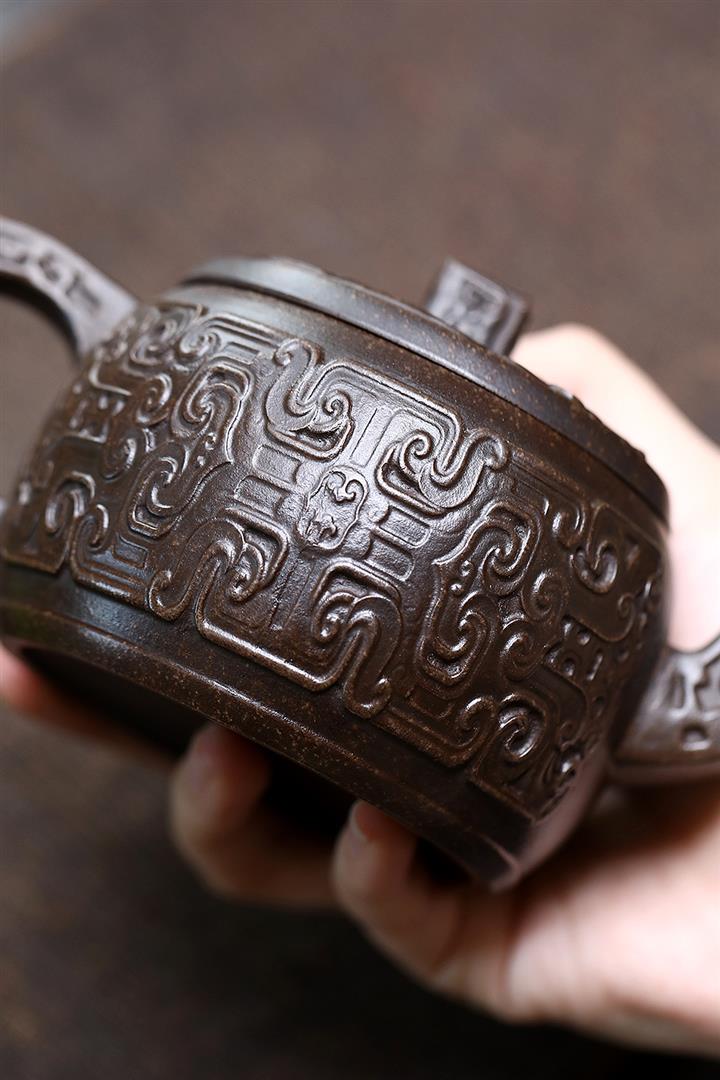 砂壺韻海刻匯松鼠壺紫砂壺150cc pot3429