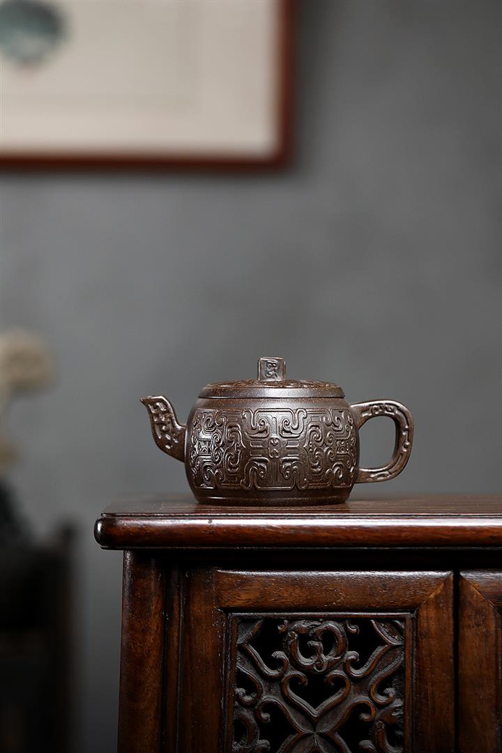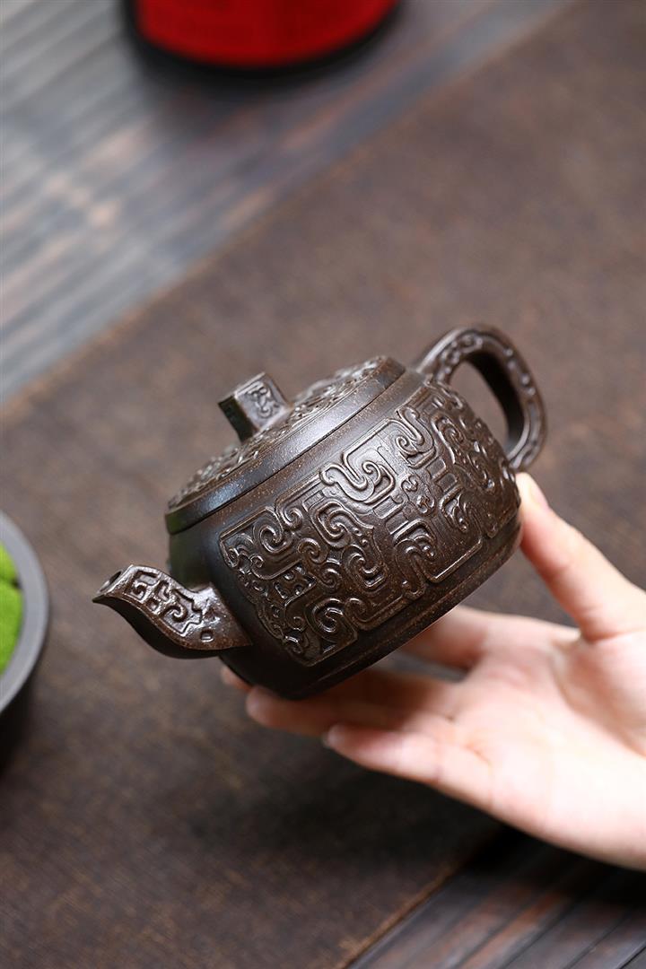 原礦手工刻繪大紅袍茶壺紫砂壺250cc POT3423