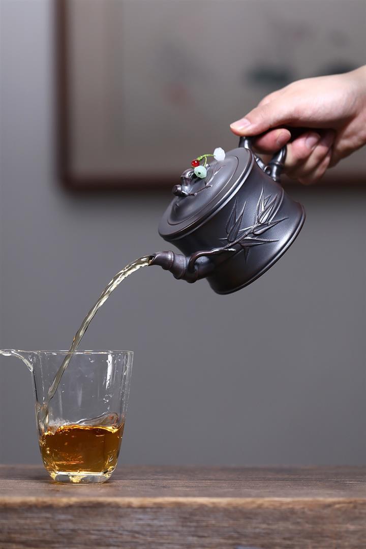 【作品介紹】此款壺形線條流暢,壺把,壺嘴,壺身壹氣呵成栩栩如生,是收藏把玩的好壺,泥料色澤古樸典雅,日久使用,漸露鋒芒,養成變化快,溫潤莊重,用其泡茶,使用的年代久,壺身就溫潤,泡出來的茶湯也就醇郁芳馨。
