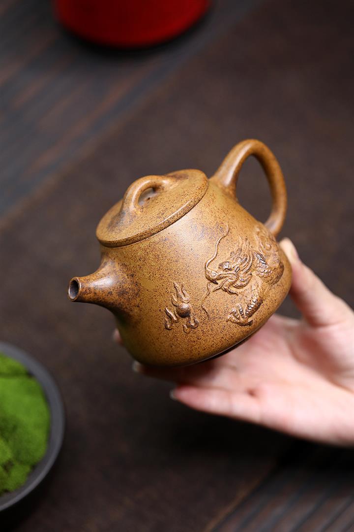 310cc原礦高溫段泥遊龍戲珠高石瓢茶壺POT8201