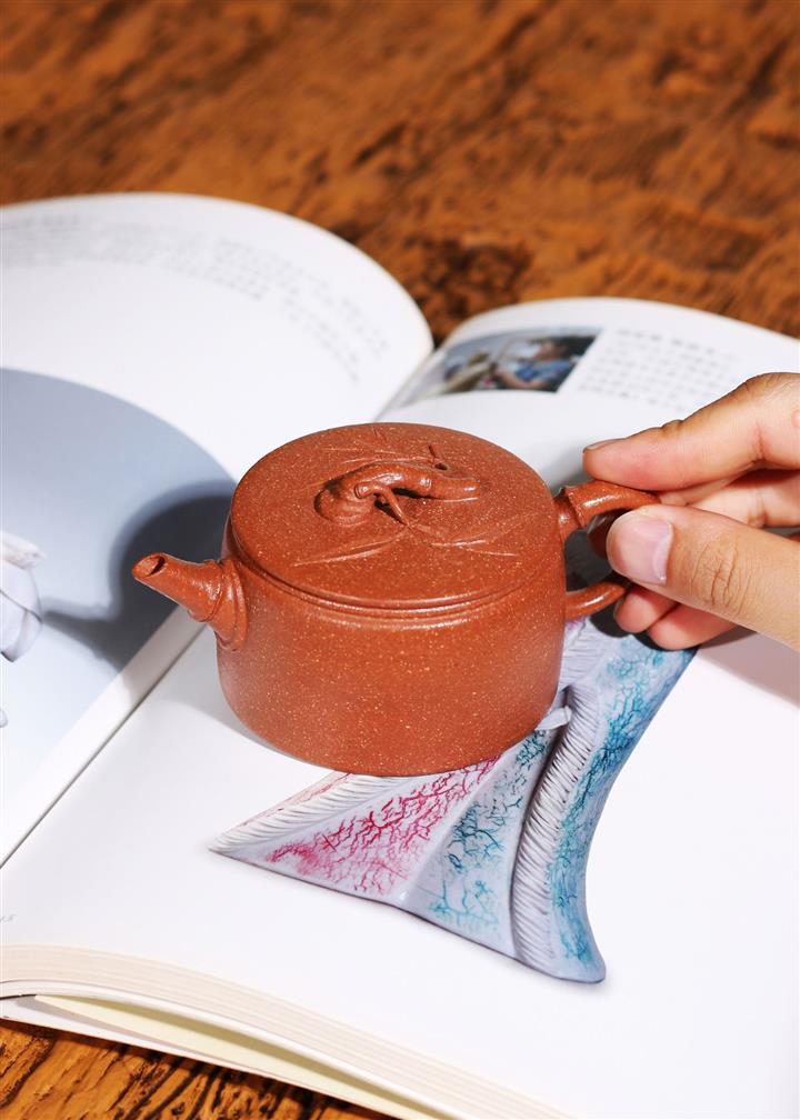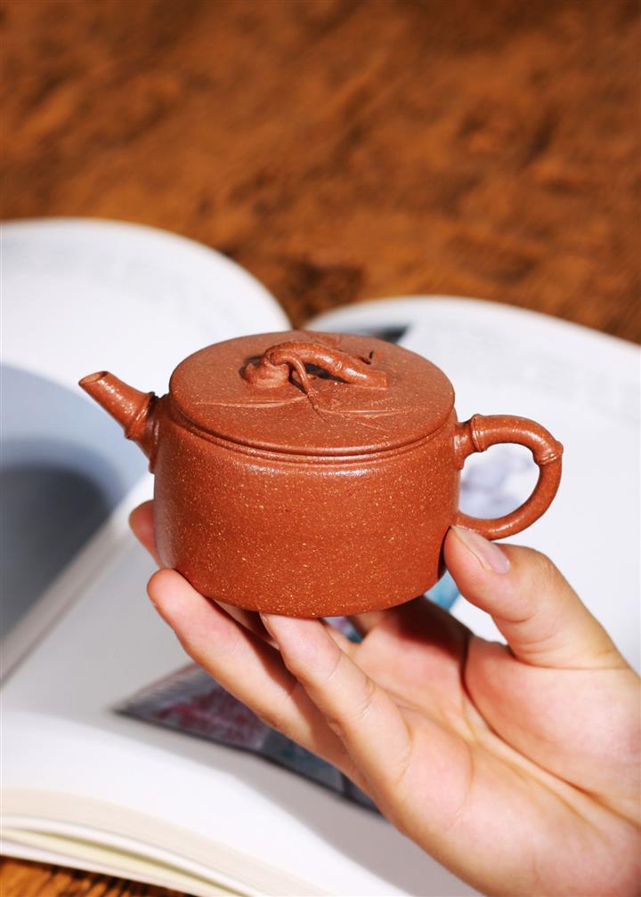 【泥料特點】砂土氣重,似淳實農民,日久使用,漸露鋒芒,養成變化,溫潤莊重。紫砂是壹種雙重氣孔結構的多孔性材質,氣孔微細,密度高。用紫砂壺沏茶,不失原味,且香不渙散,得茶之真香真味。紫砂使用越久,壺身色澤越發光亮照人,氣韻溫雅。紫砂壺長久使用器身會因撫摸擦拭,變得越發溫潤光澤。