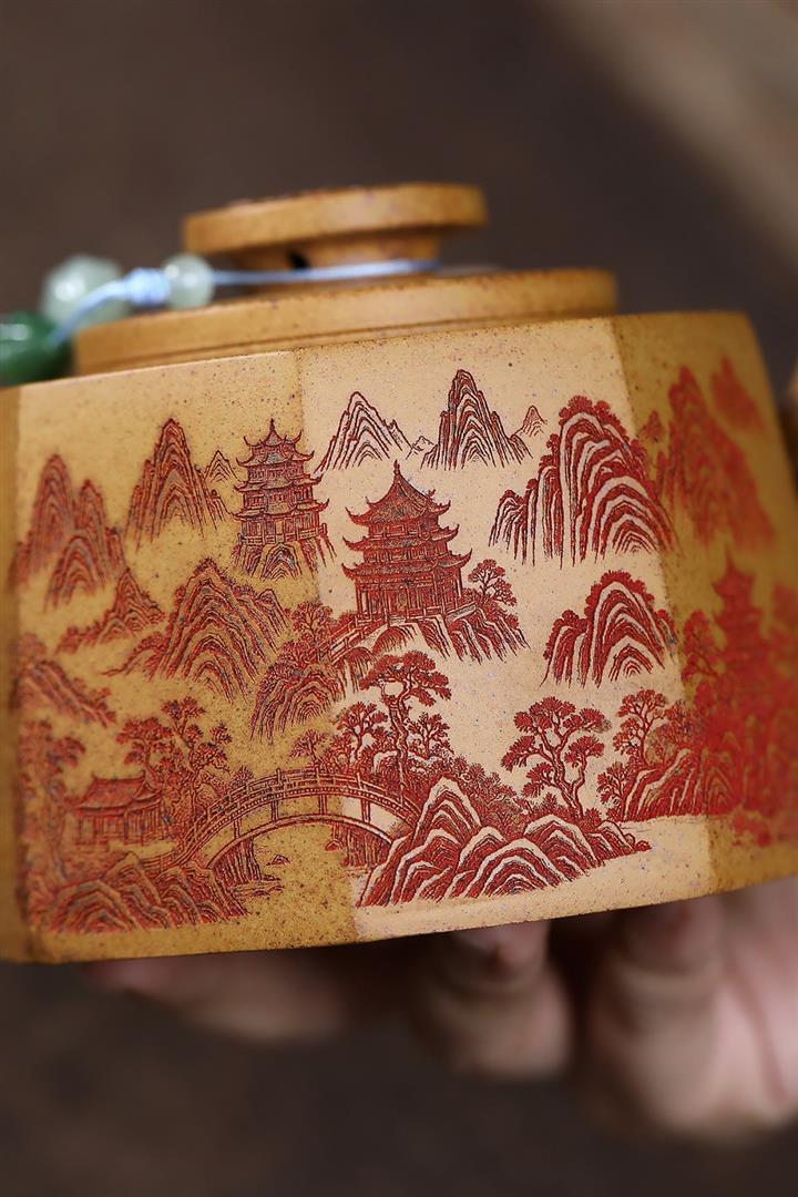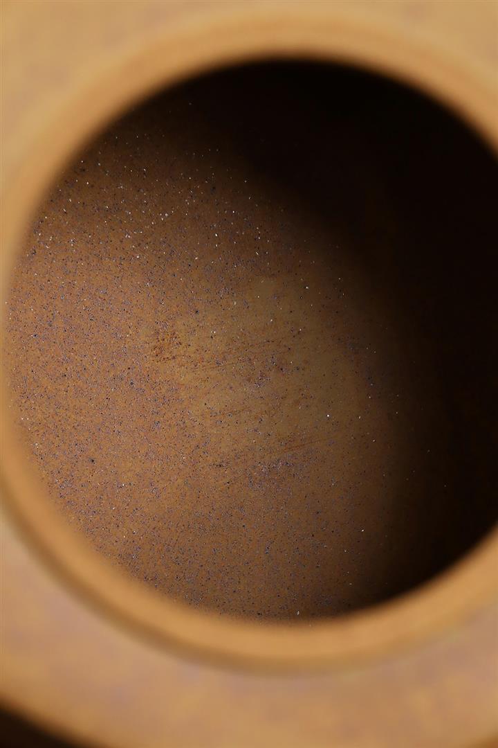【泥料特點】砂土氣重,似淳實農民,日久使用,漸露鋒芒,養成變化,溫潤莊重。紫砂是壹種雙重氣孔結構的多孔性材質,氣孔微細,密度高。用紫砂壺沏茶,不失原味,且香不渙散,得茶之真香真味。紫砂使用越久,壺身色澤越發光亮照人,氣韻溫雅。紫砂壺長久使用器身會因撫摸擦拭,變得越發溫潤光澤。