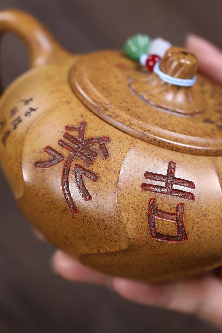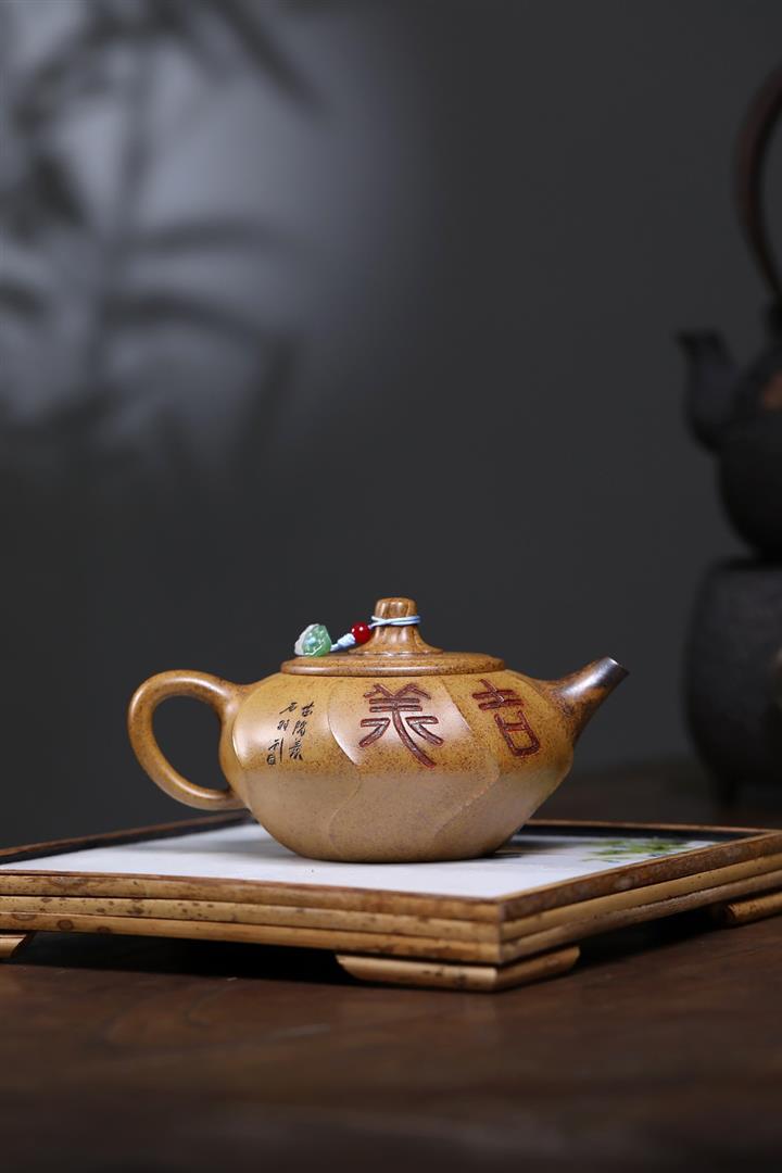 原礦赤金朱泥描金大漢瓦茶壺POT7180