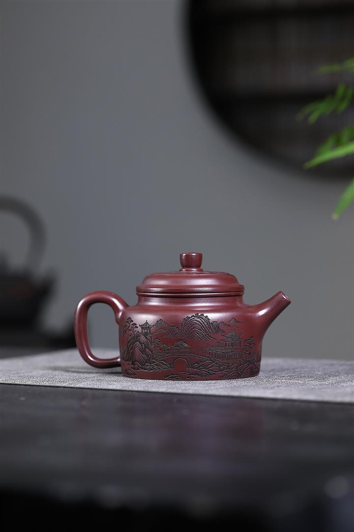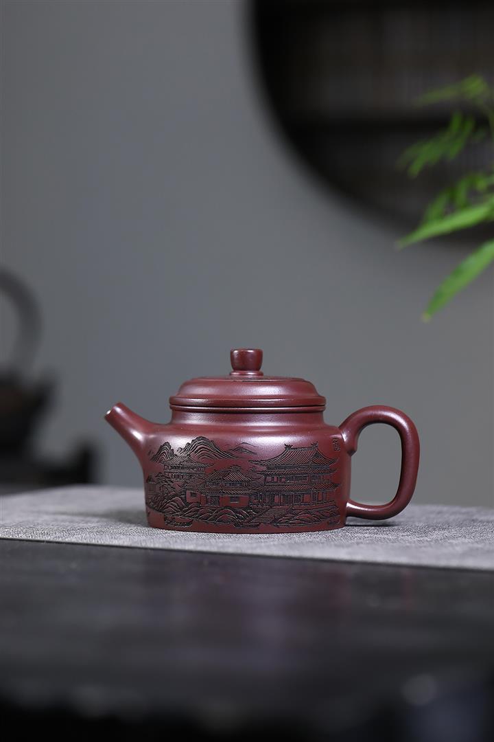 原礦大紅袍焐灰吉祥如意漢瓦茶壺POT7642