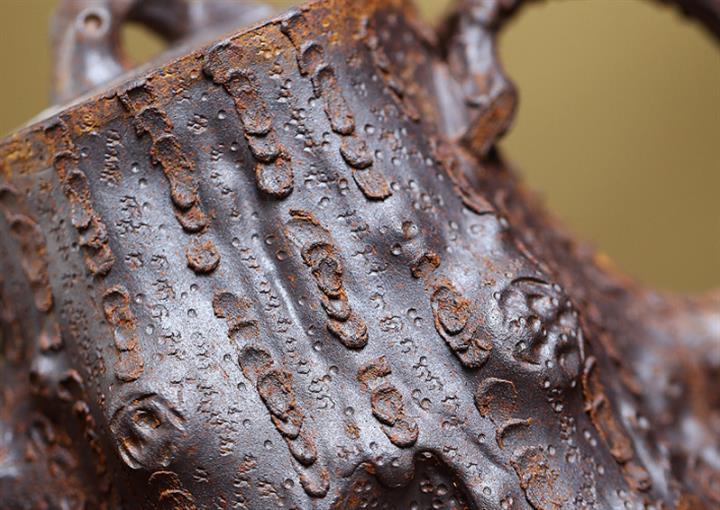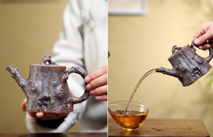 【泥料特點】砂土氣重,似淳實農民,日久使用,漸露鋒芒,養成變化,溫潤莊重。紫砂是壹種雙重氣孔結構的多孔性材質,氣孔微細,密度高。用紫砂壺沏茶,不失原味,且香不渙散,得茶之真香真味。紫砂使用越久,壺身色澤越發光亮照人,氣韻溫雅。紫砂壺長久使用器身會因撫摸擦拭,變得越發溫潤光澤。