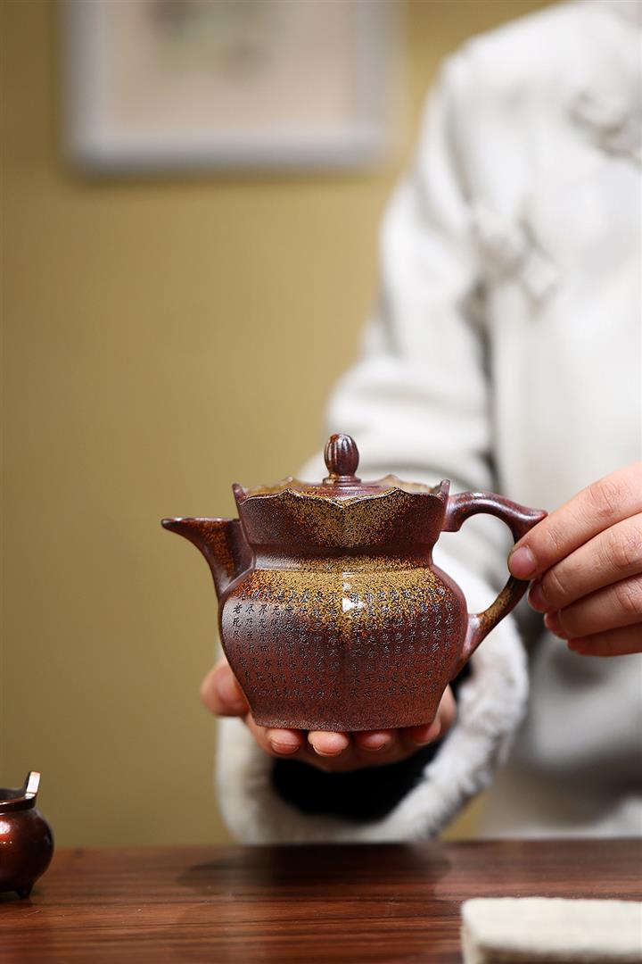 290cc段泥古法柴燒六方僧帽茶壺POT8294