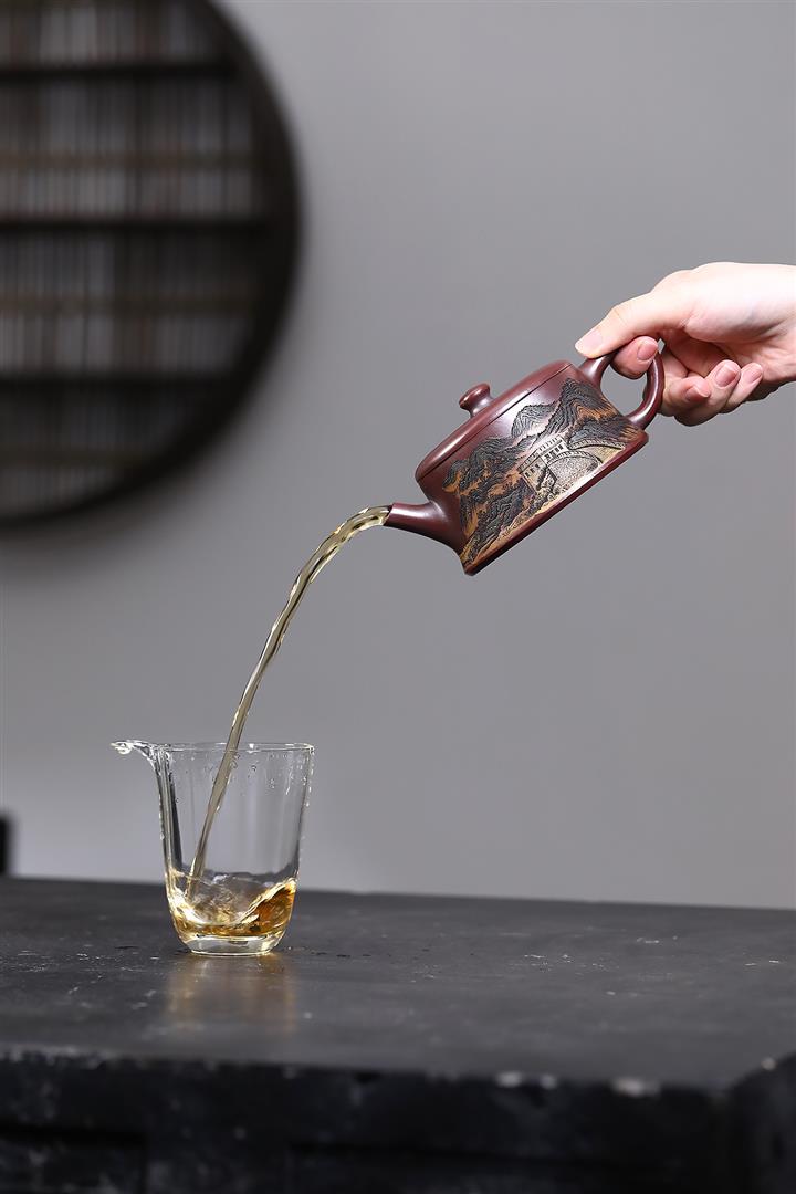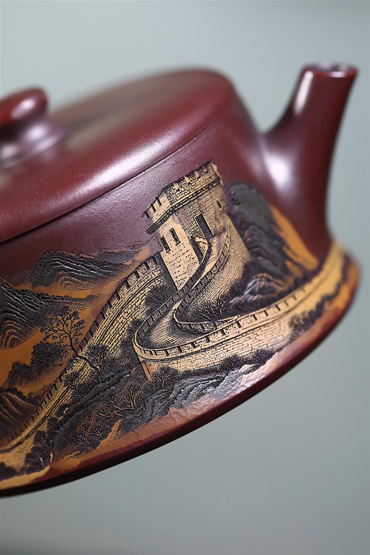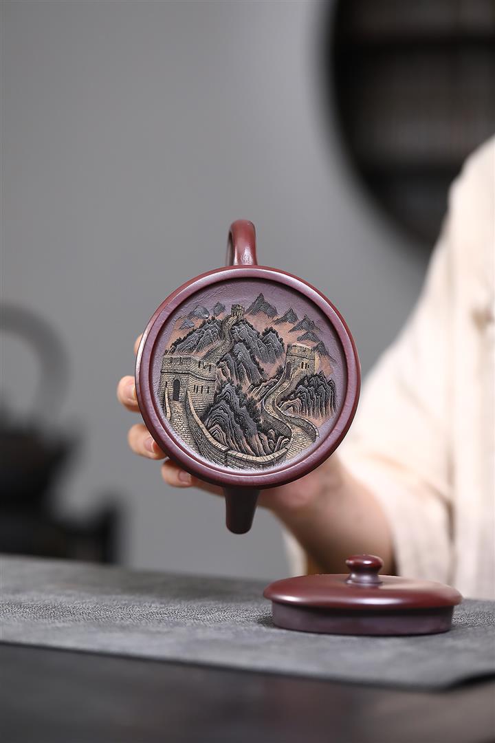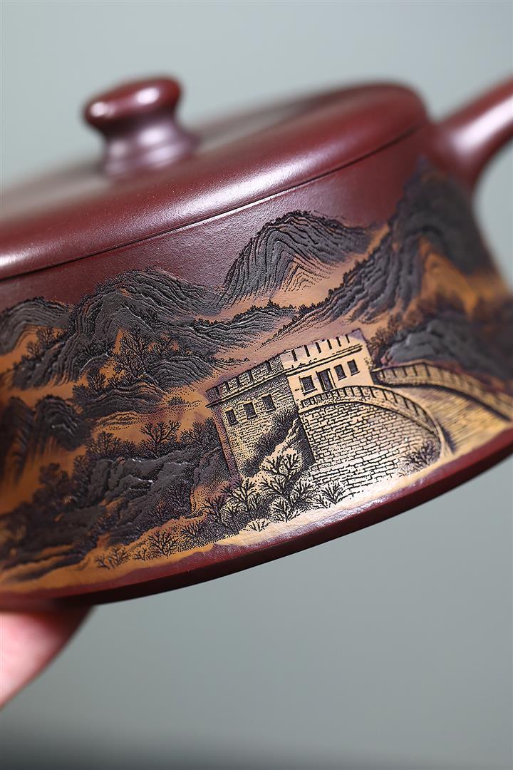 190cc原礦紫泥滿刻萬裏長城茶壺POT8310