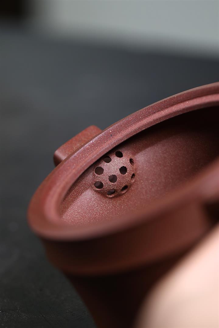 【作品介紹】此款壺形線條流暢,壺把,壺嘴,壺身壹氣呵成栩栩如生,是收藏把玩的好壺,泥料色澤古樸典雅,日久使用,漸露鋒芒,養成變化快,溫潤莊重,用其泡茶,使用的年代久,壺身就溫潤,泡出來的茶湯也就醇郁芳馨。