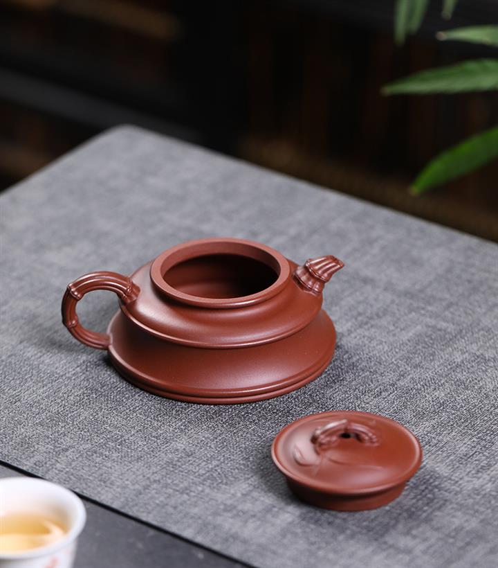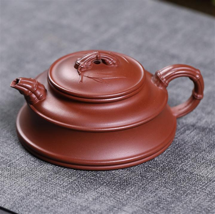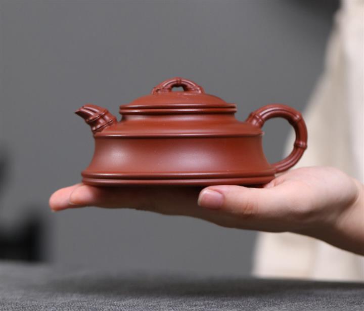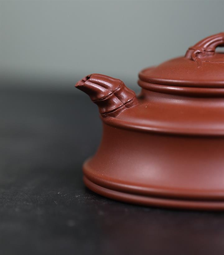 160cc原礦紅皮龍紫砂雙線竹鼓茶壺POT8318