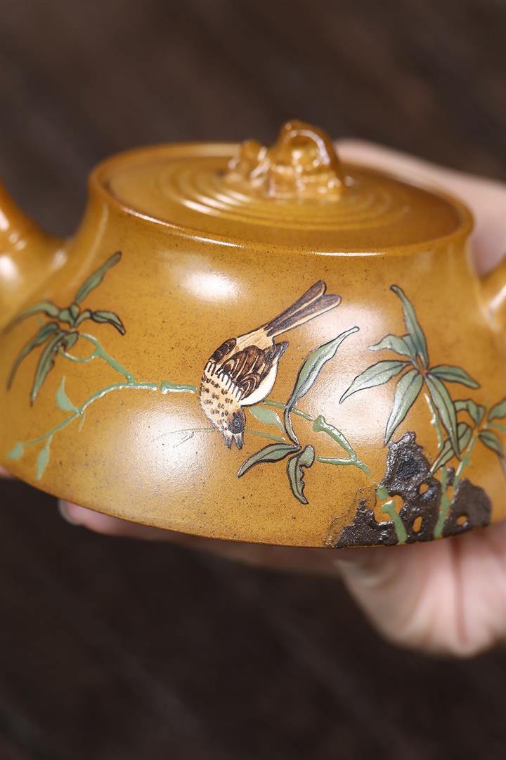 原礦紫泥手工刻繪高石瓢茶壺POT7100