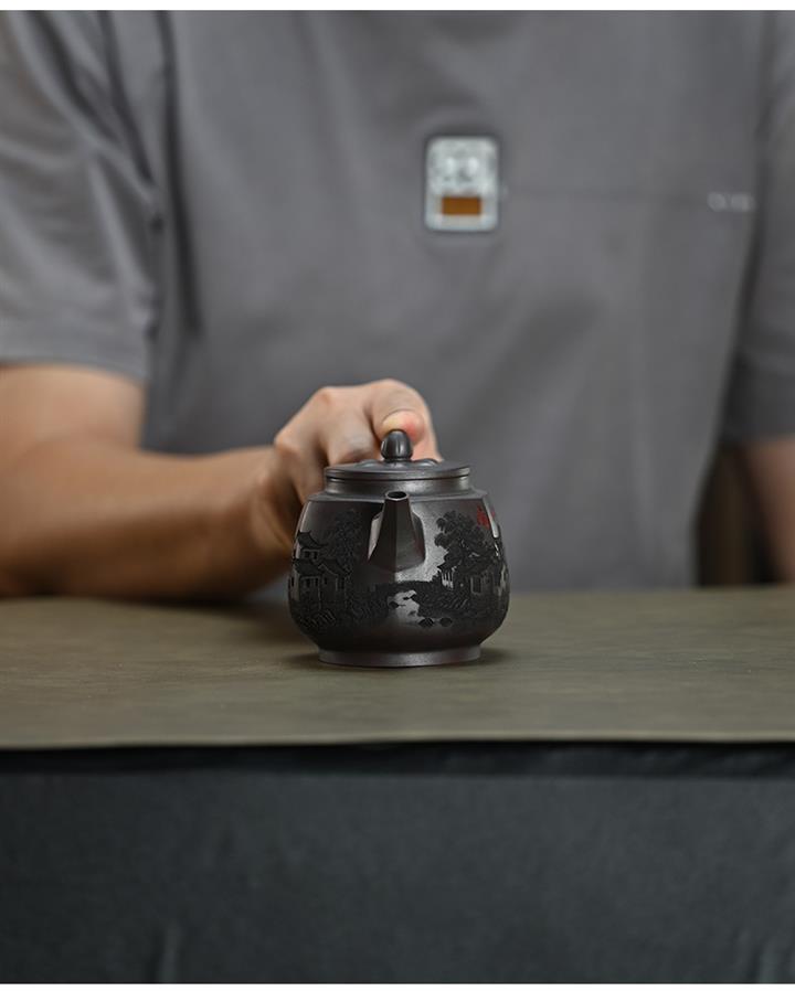 【作品介紹】此款壺形線條流暢,壺把,壺嘴,壺身壹氣呵成栩栩如生,是收藏把玩的好壺,泥料色澤古樸典雅,日久使用,漸露鋒芒,養成變化快,溫潤莊重,用其泡茶,使用的年代久,壺身就溫潤,泡出來的茶湯也就醇郁芳馨。