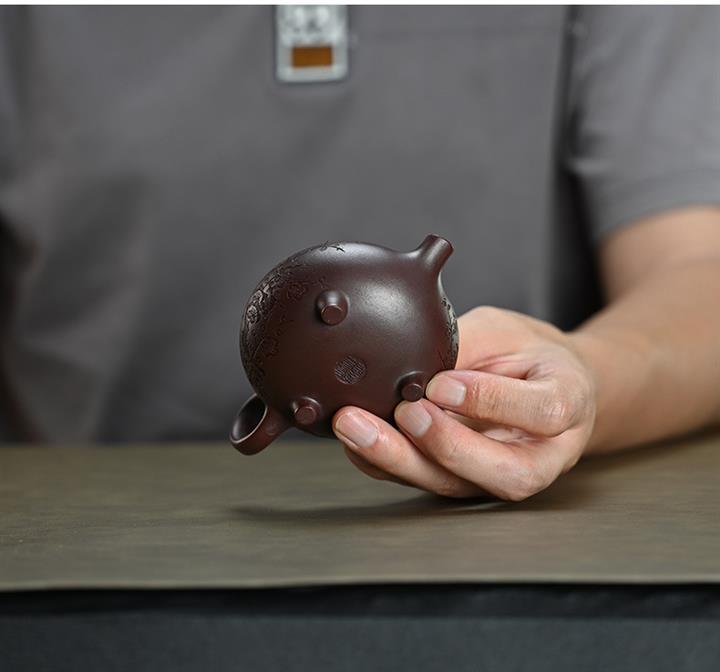 【作品介紹】此款壺形線條流暢,壺把,壺嘴,壺身壹氣呵成栩栩如生,是收藏把玩的好壺,泥料色澤古樸典雅,日久使用,漸露鋒芒,養成變化快,溫潤莊重,用其泡茶,使用的年代久,壺身就溫潤,泡出來的茶湯也就醇郁芳馨。