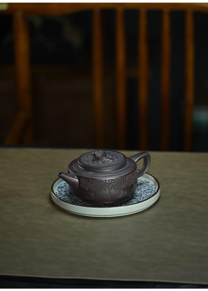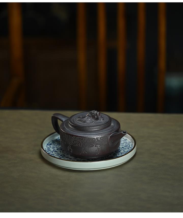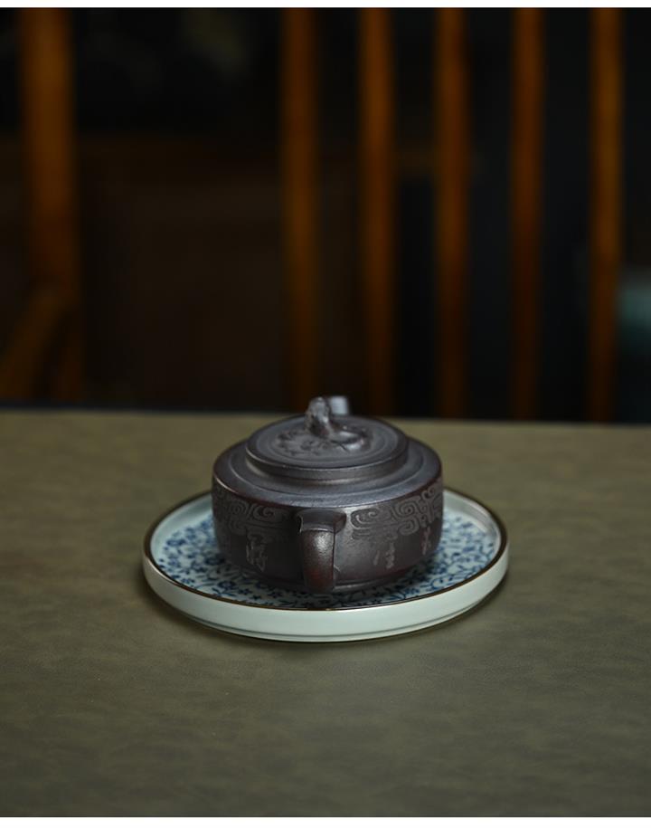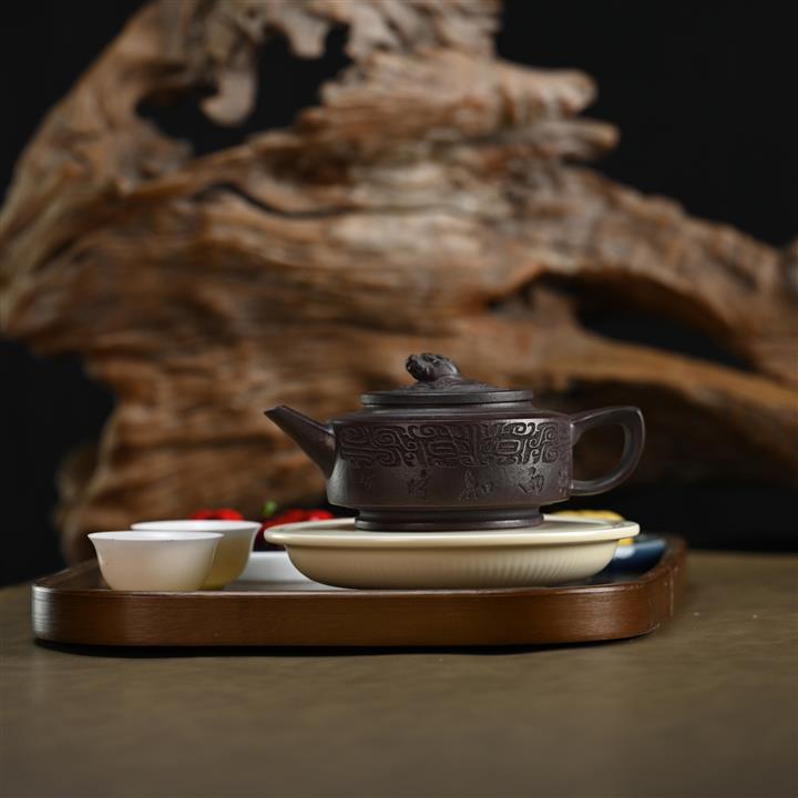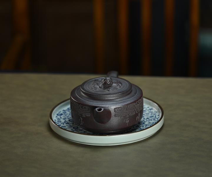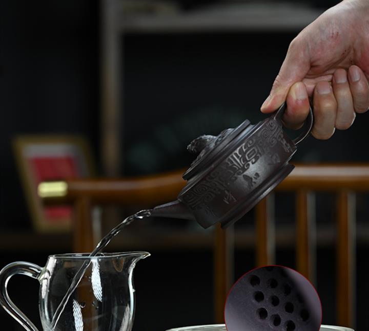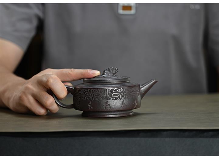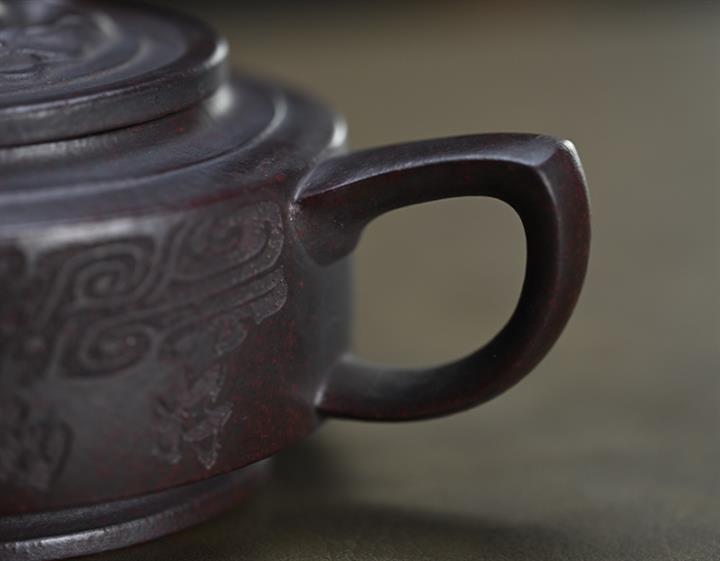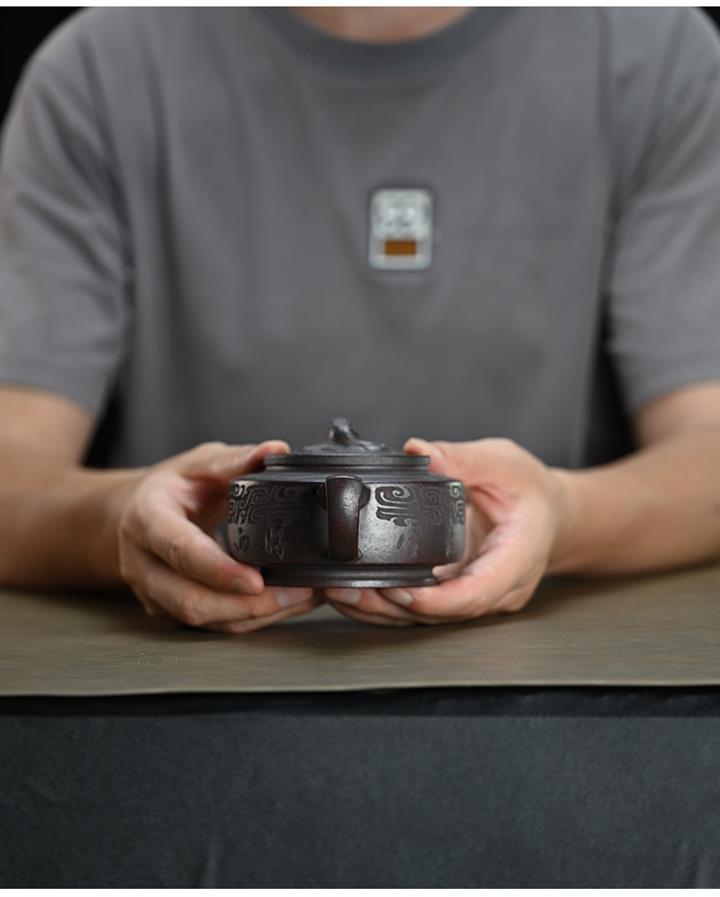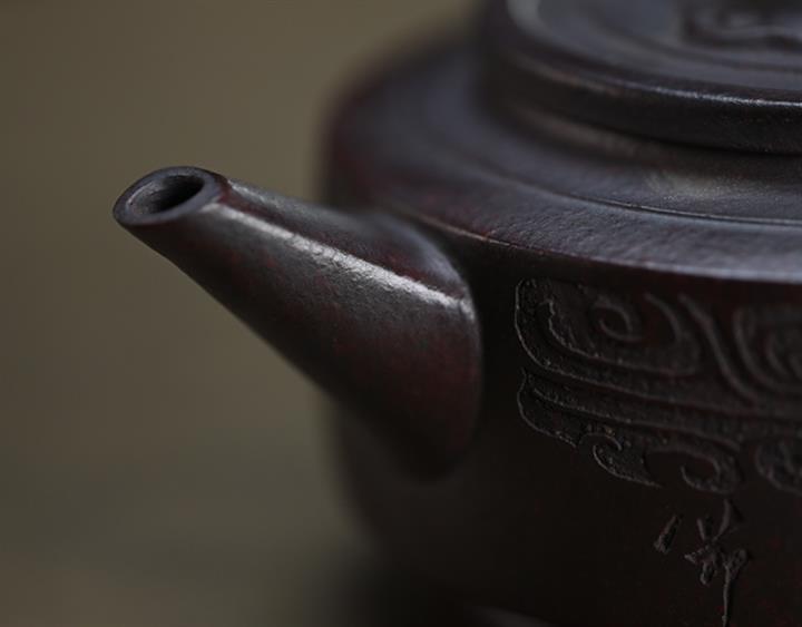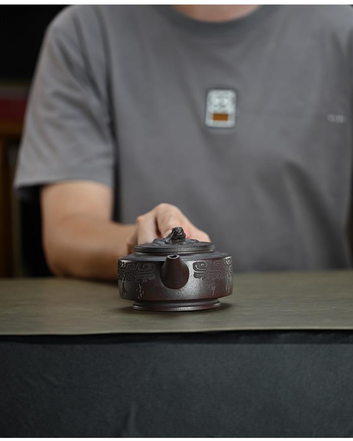 紫砂壺稀有龍血砂石瓢壺純手工刻繪POT3922