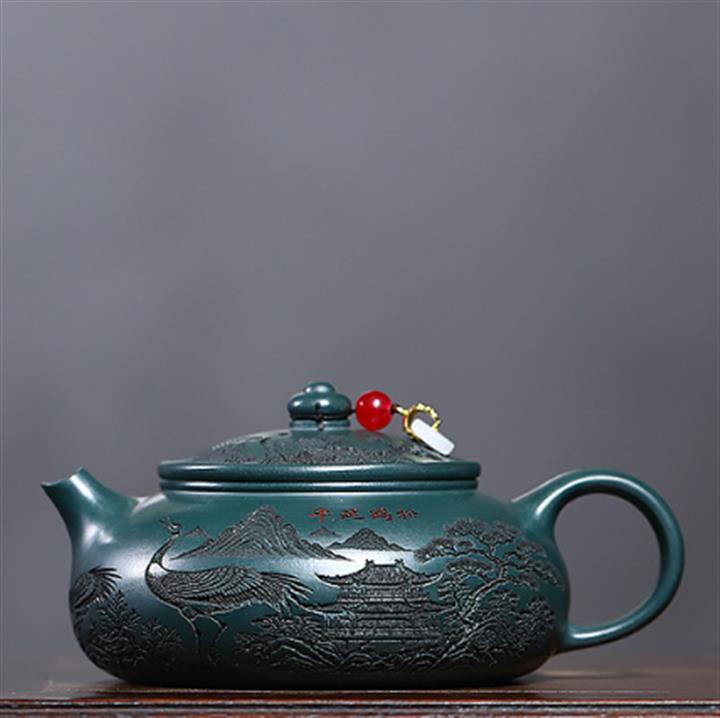 230cc原礦墨綠泥仙鶴寒江泡茶壺POT9725