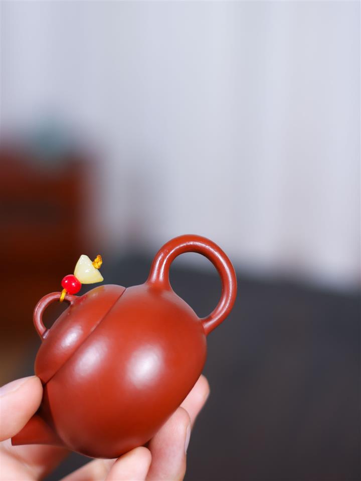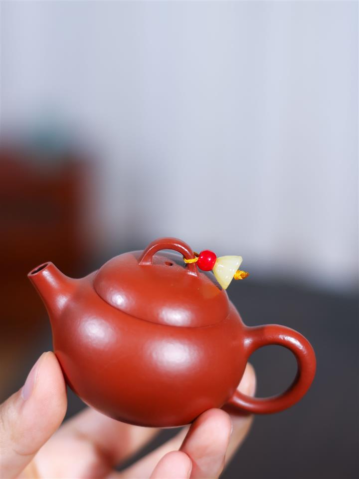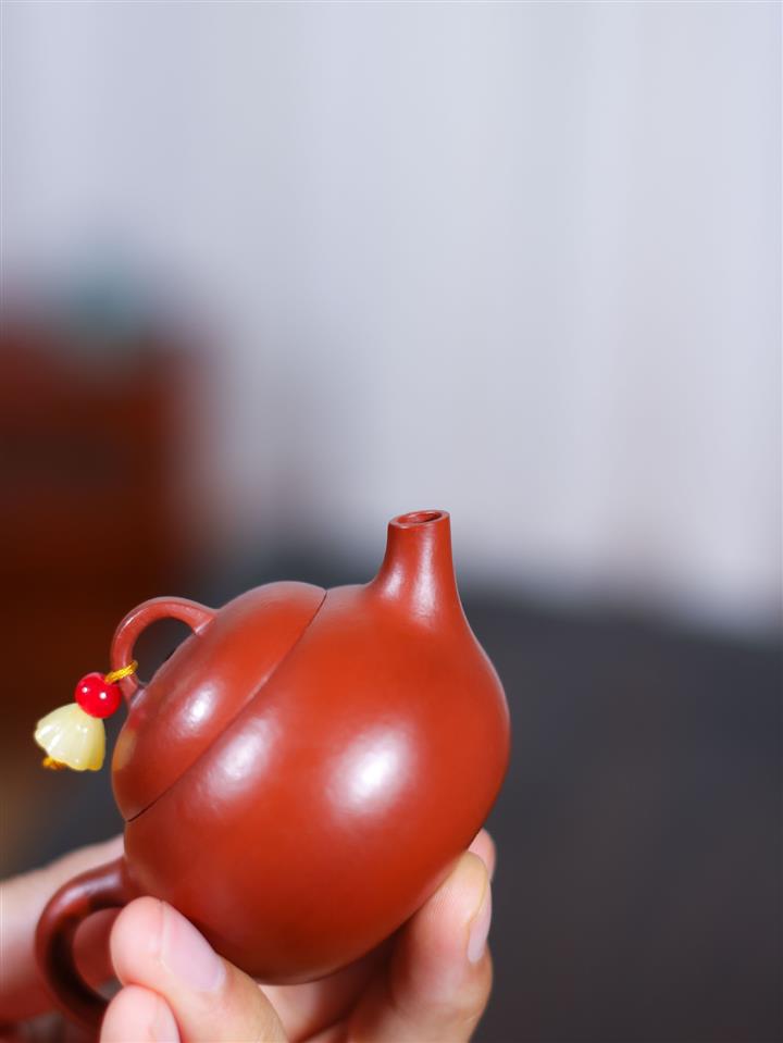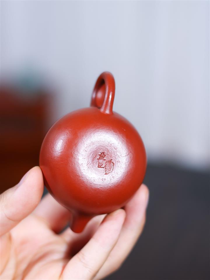 手工紫砂壺證書全陳腐紅降坡三足合歡pot3887