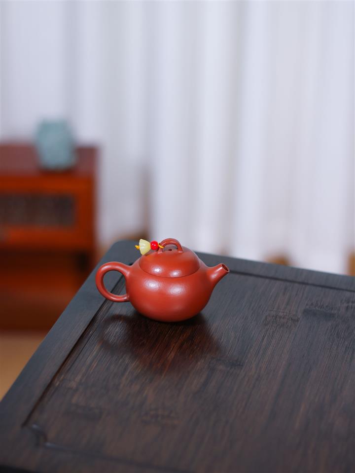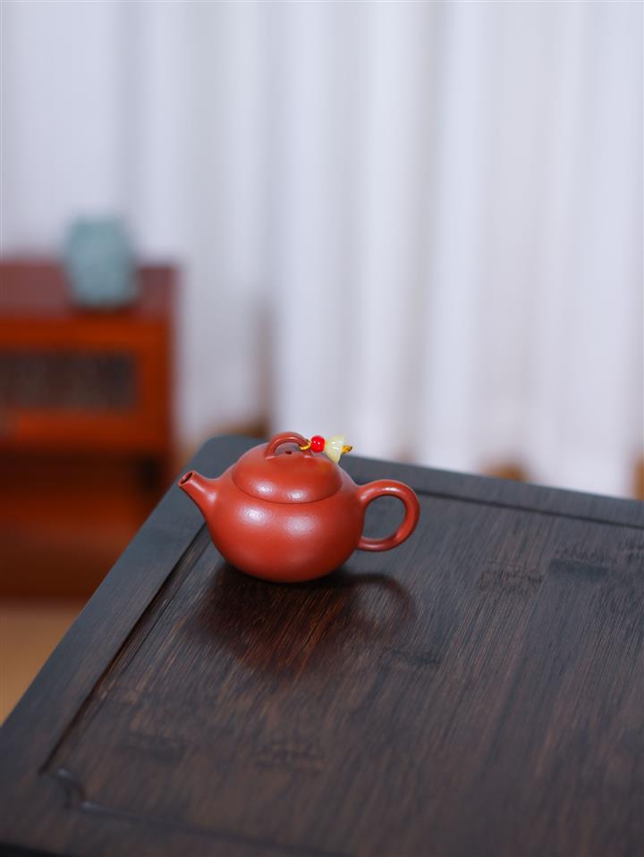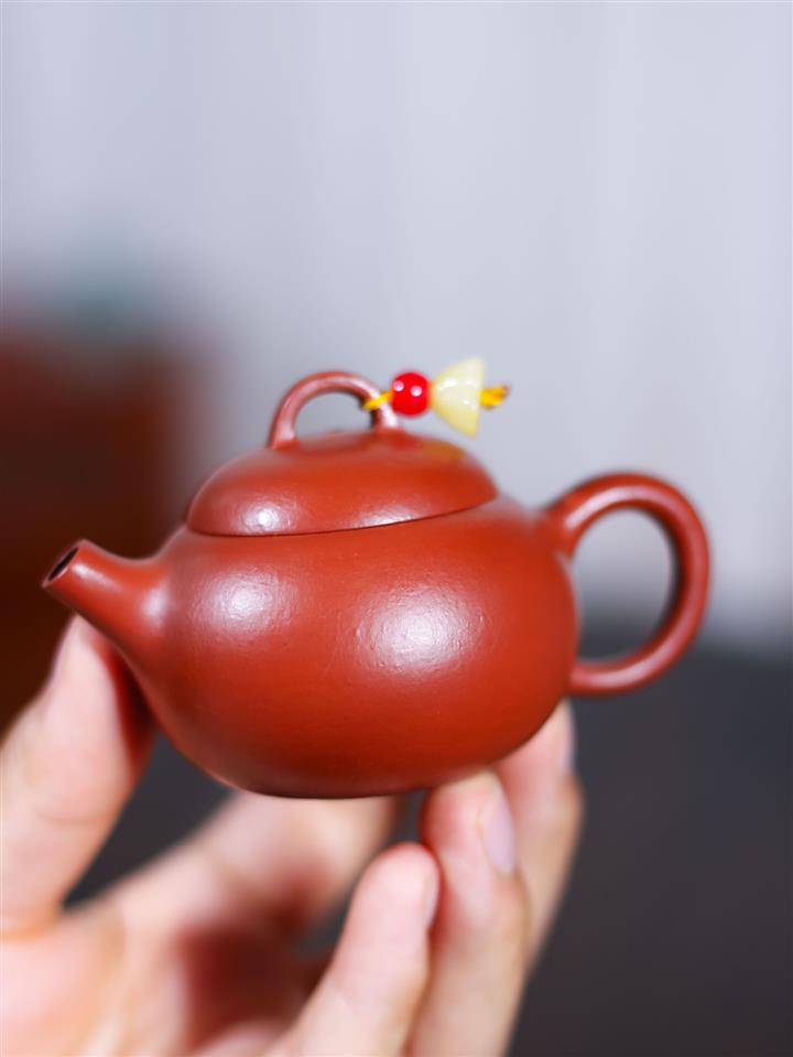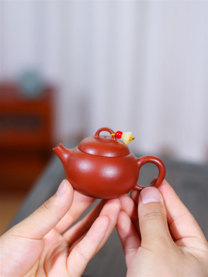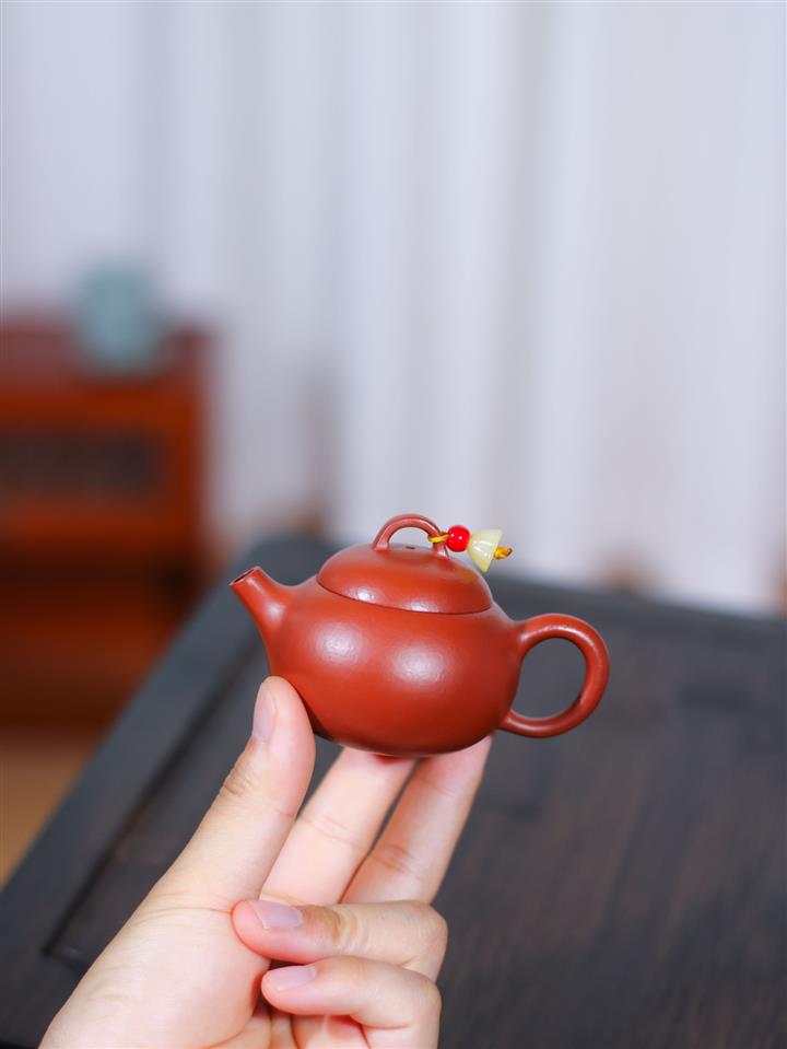 手工紫砂壺證書全陳腐紅降坡三足合歡pot3887