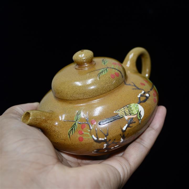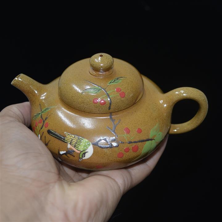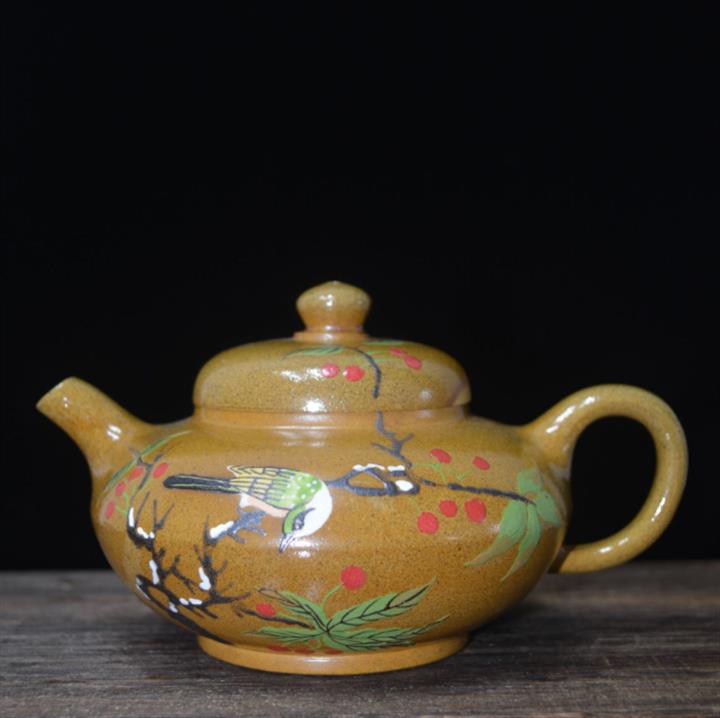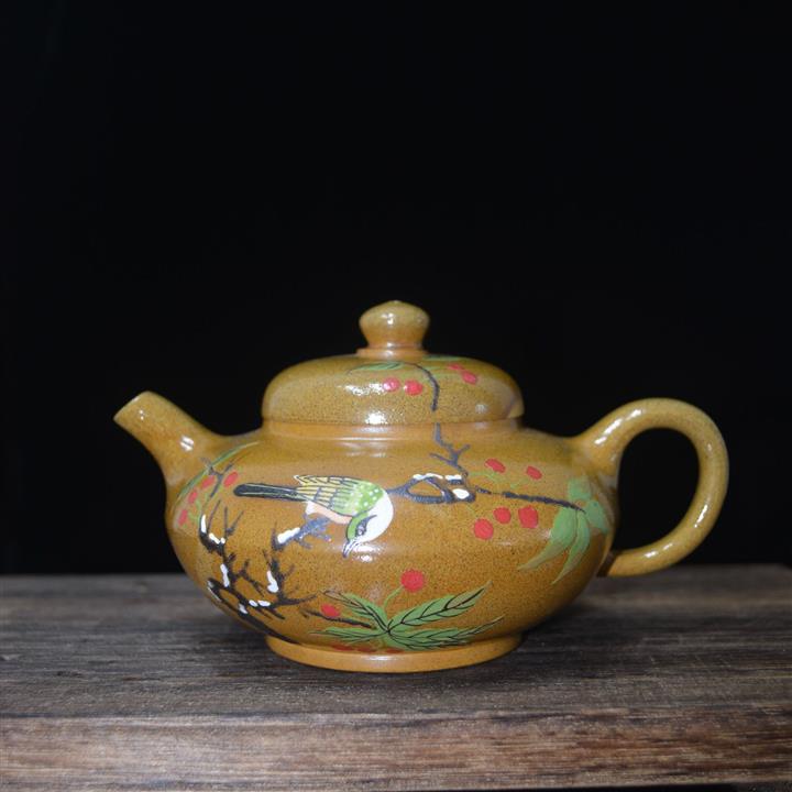 260cc原礦段泥柴燒花鳥合歡泡茶壺POT8410